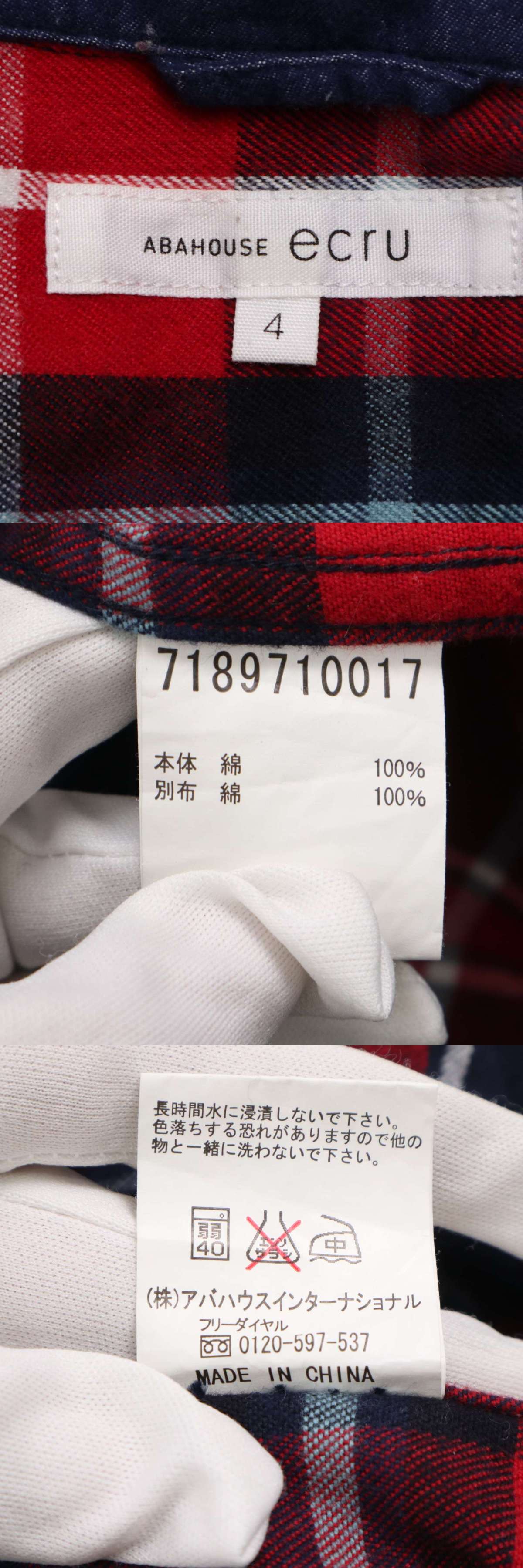 ABAHOUSE ecru アバハウス エクリュ 秋冬★ 長袖 チェック ネル シャツ Sz.4 メンズ