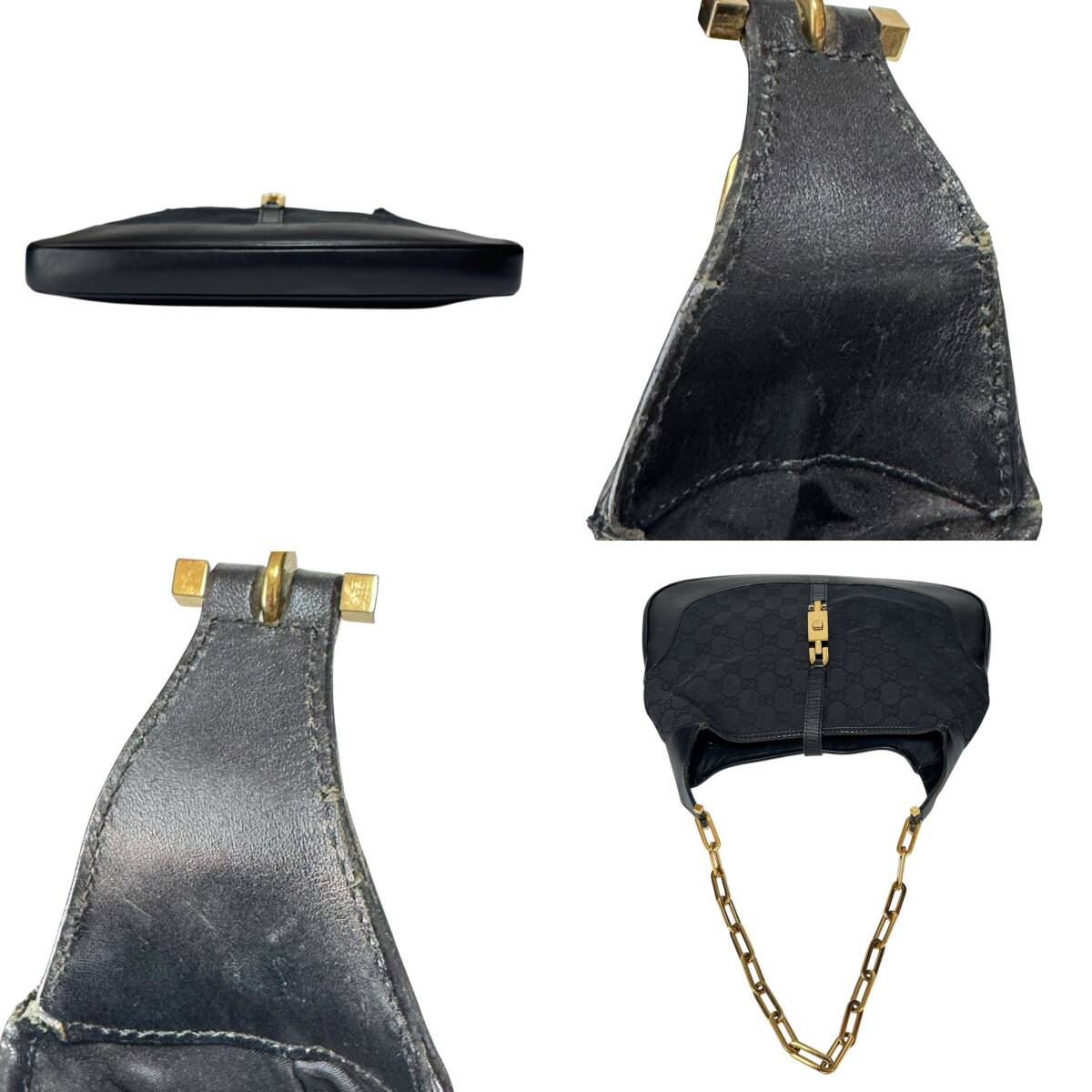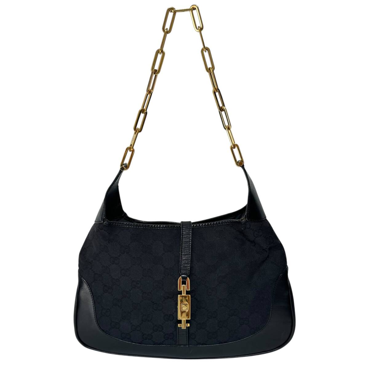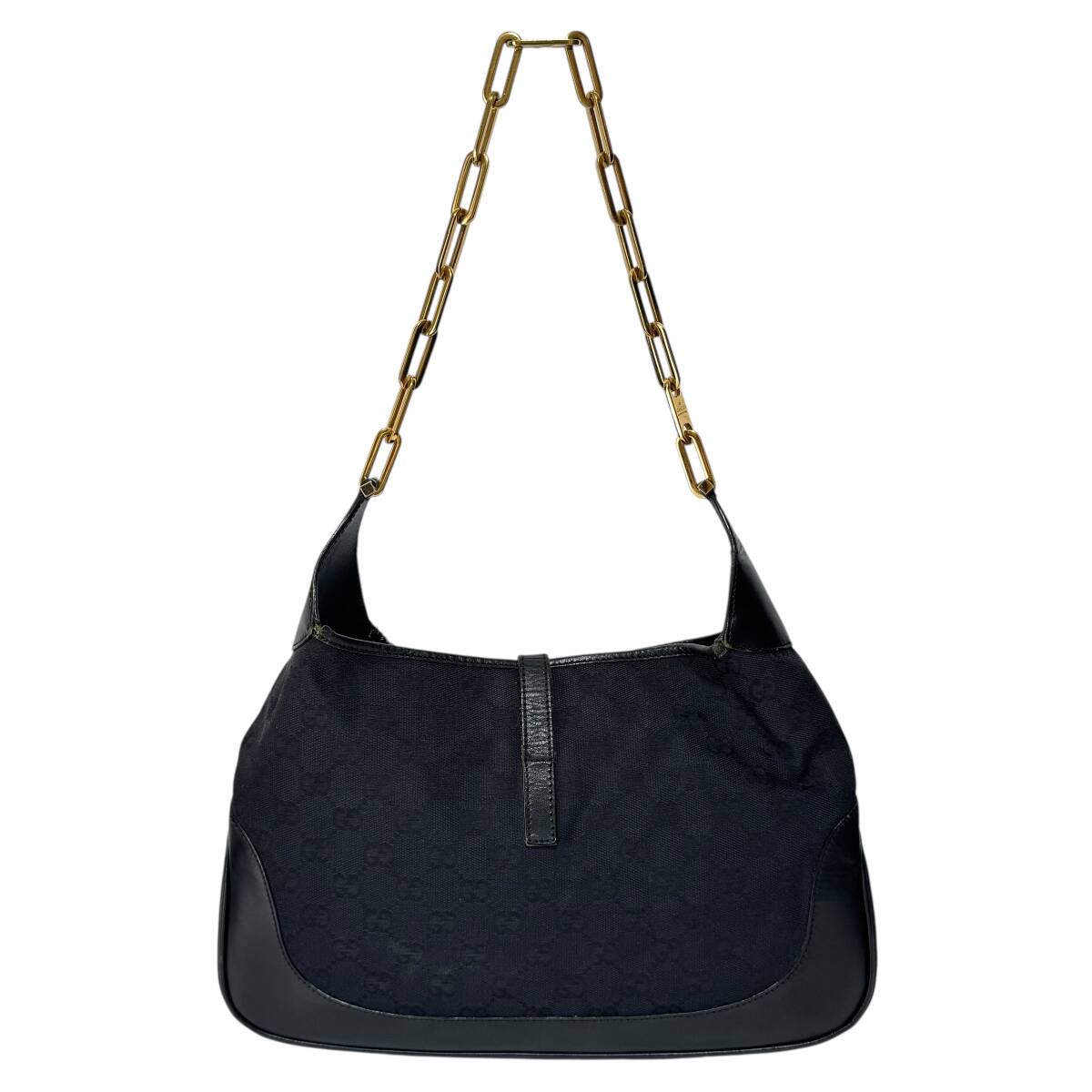This Gucci Jackie Vintage GG canvas bag is a striking example of timeless Italian elegance with a bold, modern twist. Made from black GG canvas with leather trim, it features the iconic piston-lock closure and a standout chunky gold-tone chain strap that adds a glamorous edge. The structured yet slightly slouchy silhouette makes it a perfect day-to-evening companion. A rare collector’s piece that embodies the fusion of classic Gucci heritage and Y2K-inspired fashion.