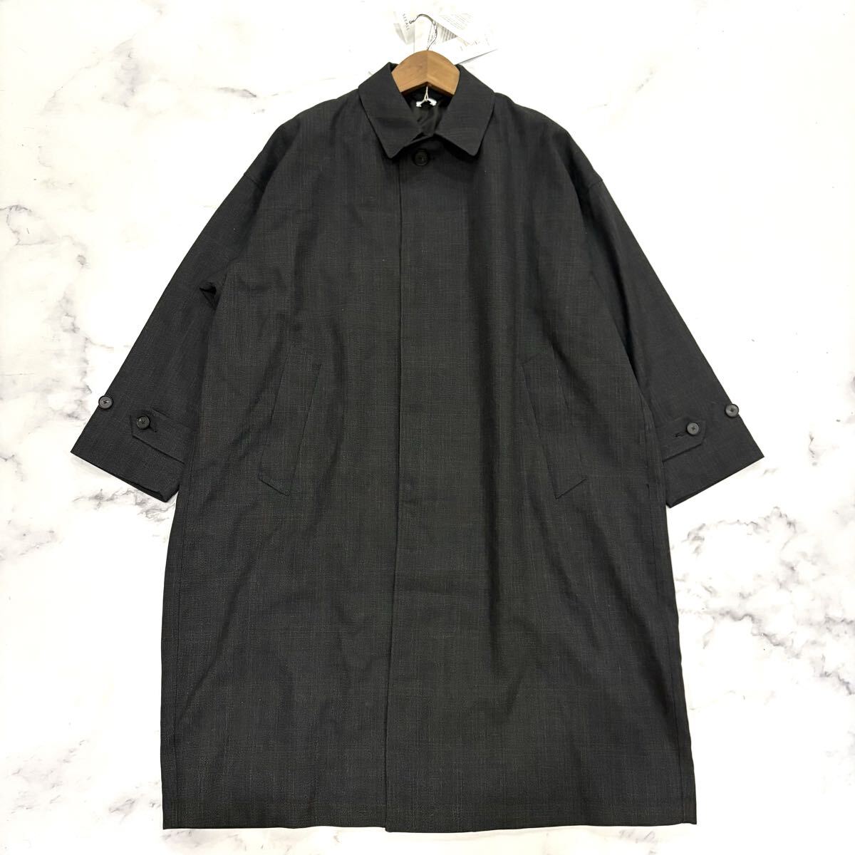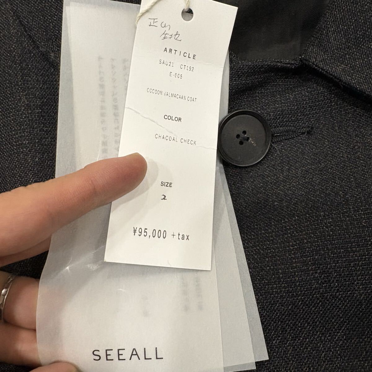 AY ■ 未使用 '定価 95,000円' 高級感溢れる SEEALL シーオール 高品質 チェック柄 比翼仕立て ステンカラーコート 2 メンズ 上着 アウター