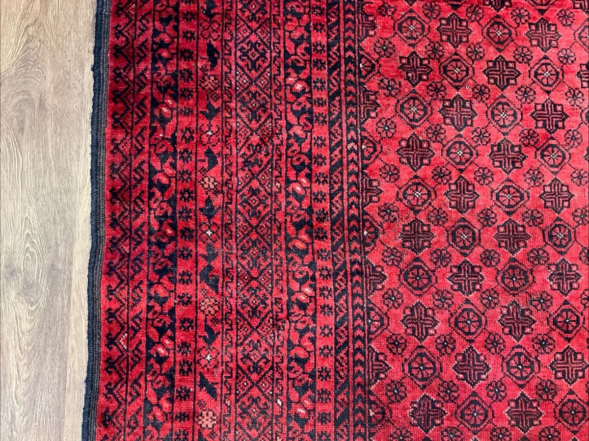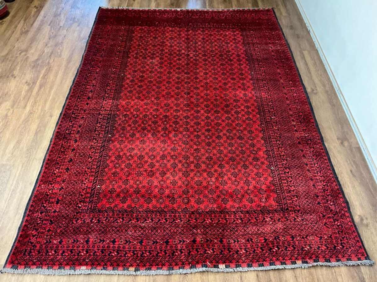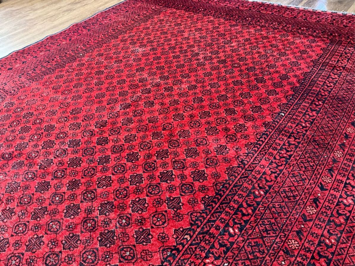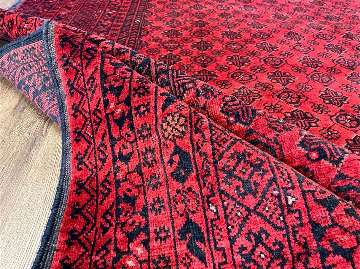 トルクメン絨毯の人気デザイン「バシリー」を織り込んだ一枚です。「バシリー」とはアフガニスタンのリンゴの花をモチーフとしたデザインで、その気品のある華やかなデザインがトルクメンコレクターの間でも根強い人気。
