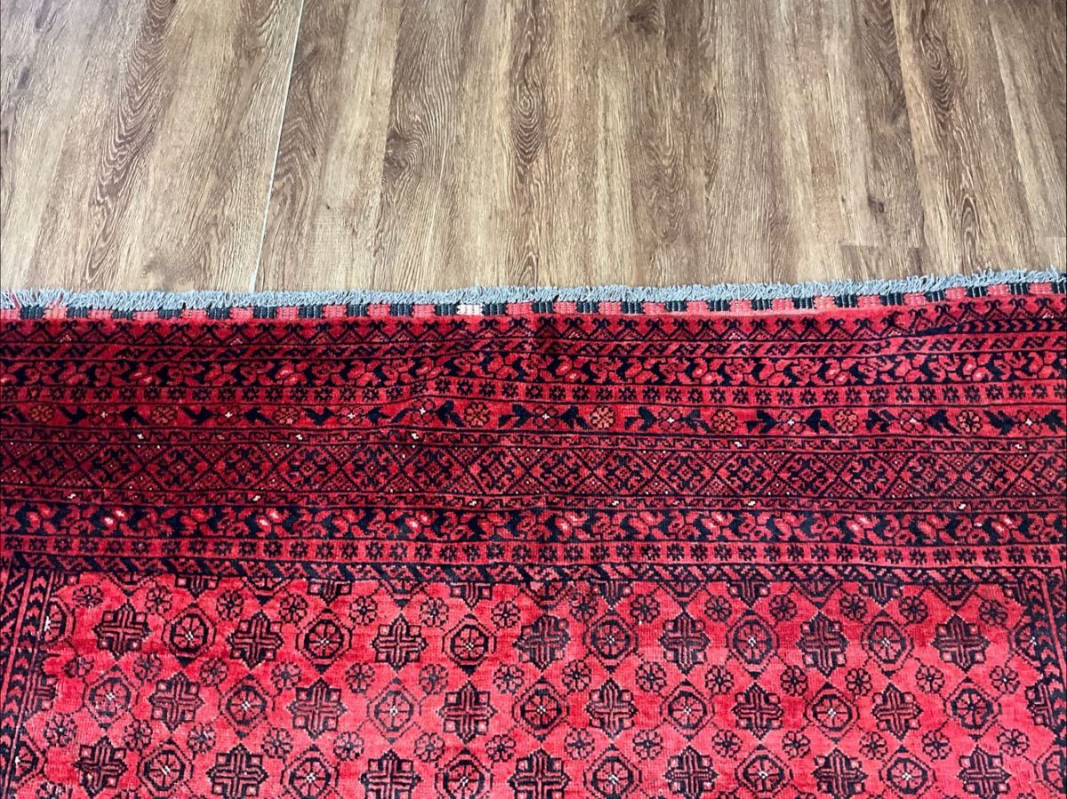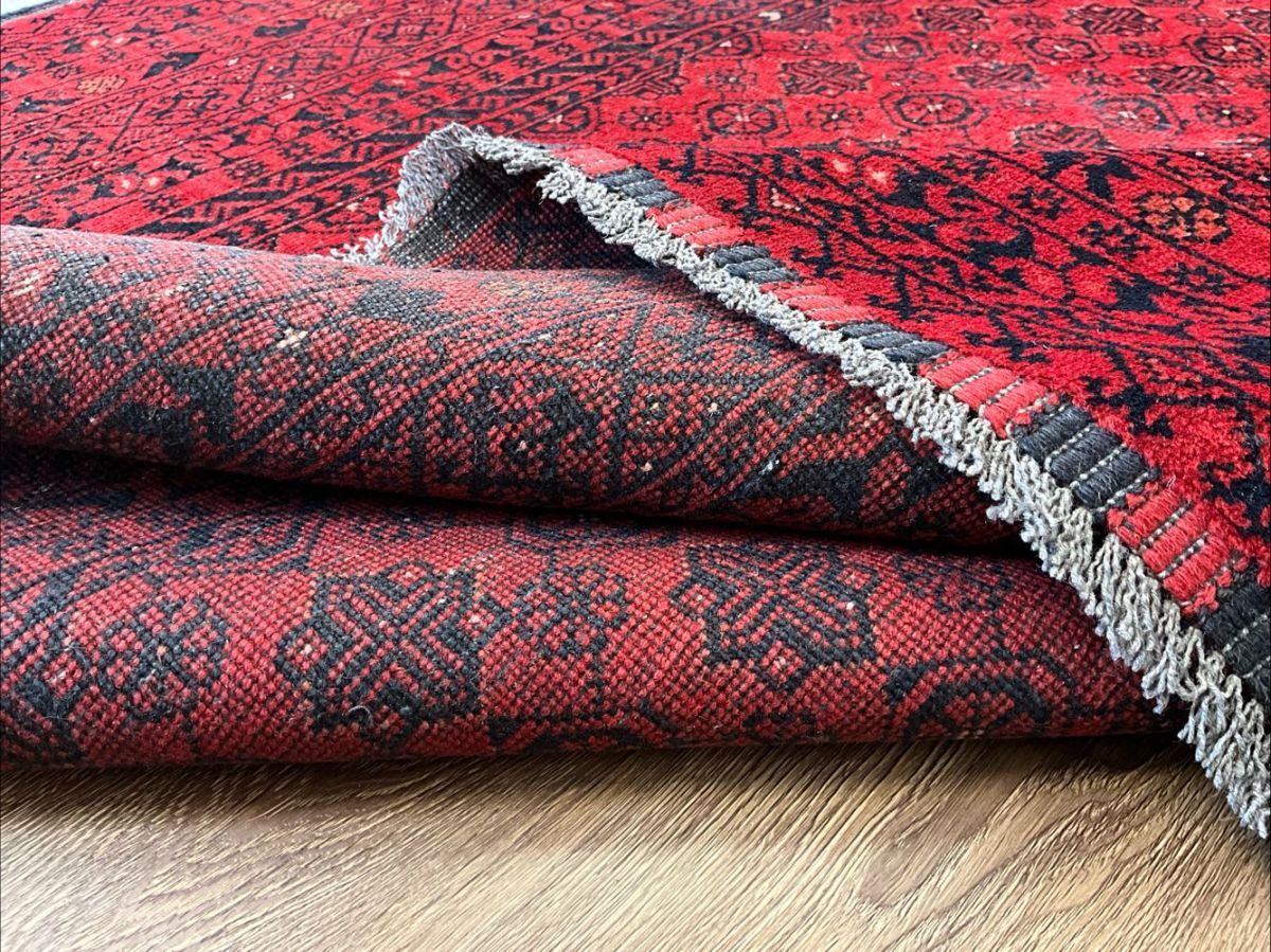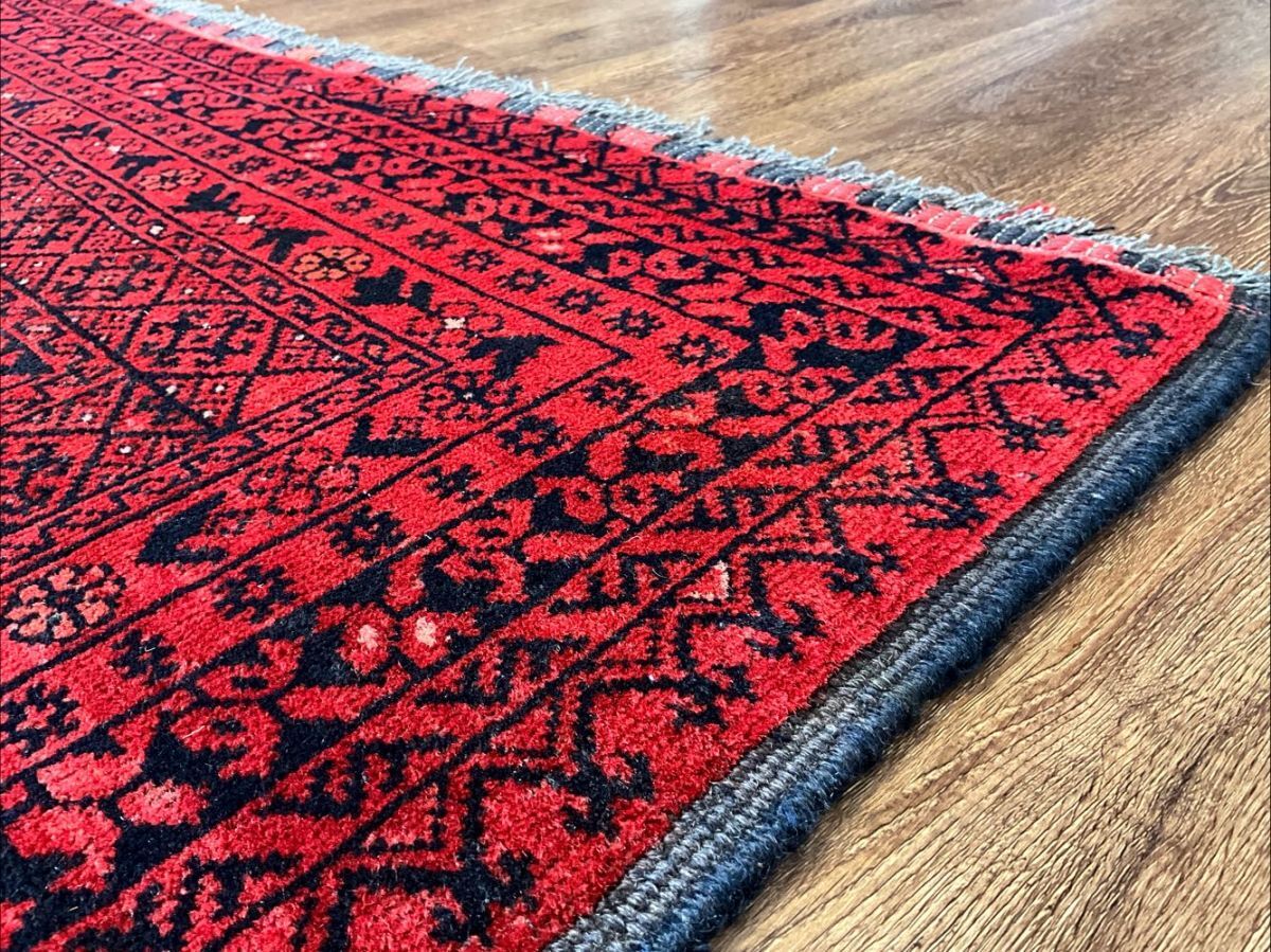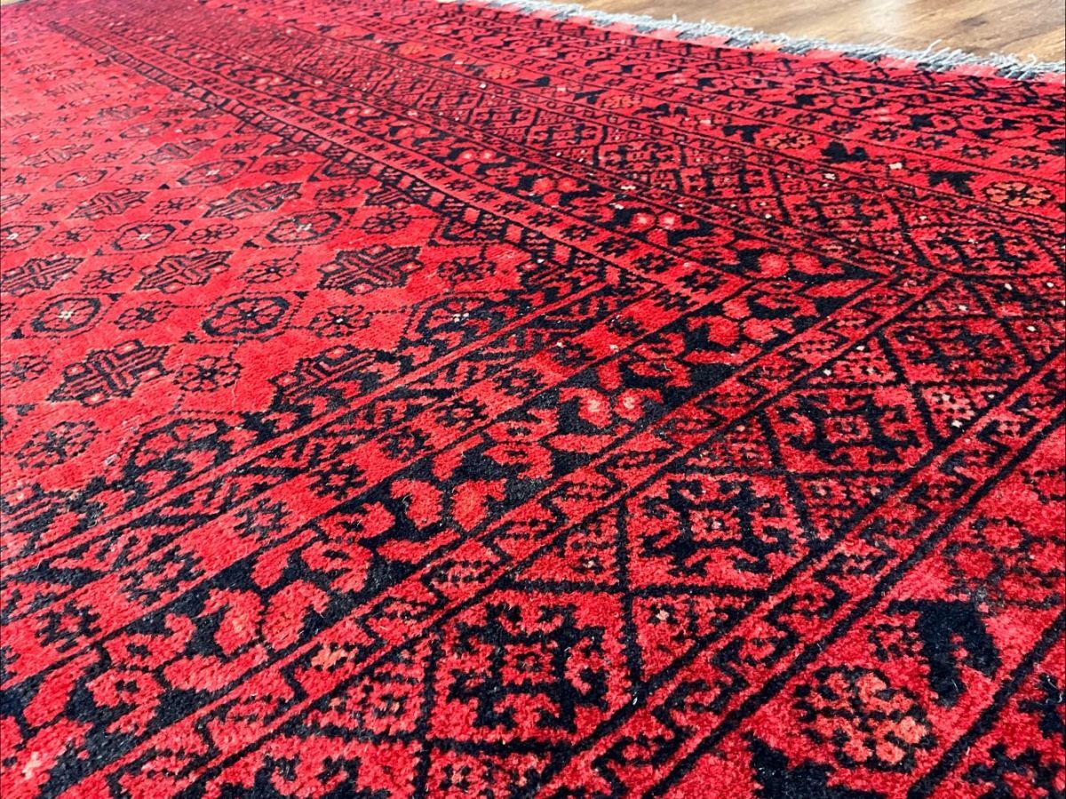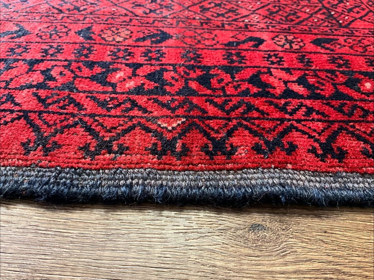 トルクメン絨毯の人気デザイン「バシリー」を織り込んだ一枚です。「バシリー」とはアフガニスタンのリンゴの花をモチーフとしたデザインで、その気品のある華やかなデザインがトルクメンコレクターの間でも根強い人気。