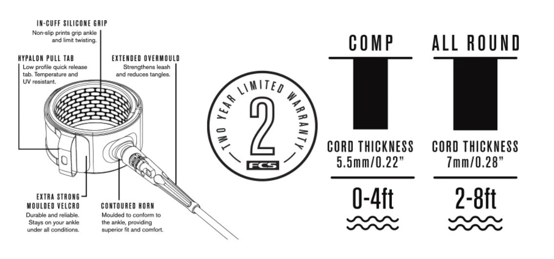 | 商品紹介 | 送料無料(一部除く)の FCS COMP Leash 6ft Black(新品です。 FCS Essential Series Leashは、革新的で話題の フリーダムリーシュから着想を得て、 あらゆる状況に対応できる、軽量で耐久性に優れた 超快適なリーシュに進化しました。 ・従来までのリーシュコードよりも、薄くなり軽量化された カフが特徴。 ・足首カフの内側には、ねじれを防ぐシリコングリップを装備。 ・カフのリリースを容易にするHypalonプルタブ。 ・強度の高い形成ベルクロ。 ・カフとコードの接続部分にあるモールドのサイズを 拡張することにより、ねじれが軽減。 ・カフとモールドの接続部のコンツアードホーンは、 足首の形状に合わせているので非常に快適なフィット感を 得られます。 長さ:約1.82m 太さ:約5.5mm 適応波サイズ:~4ft[スネ~カタ] 発送は、九州・北海道・沖縄・離島以外 佐川急便で送料無料で発送いたします。 九州・北海道・は 佐川急便で送料¥800で発送いたします。 沖縄、離島は、ゆうパック郵便(送料¥800) で発送させて頂きます。 |