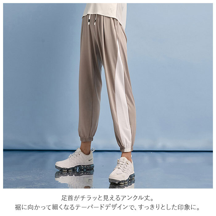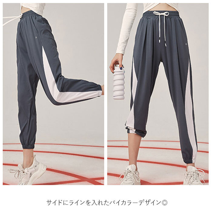 | 商品説明 | ・・ヨガやジムでのトレーニングで活躍!サイドライン入りパンツが登場。 ・軽量で薄手の生地を使用。軽やかな着心地で、動きやすさもばっちり! ・サイドにラインを入れたバイカラーデザイン◎ ・締めつけ感のないウエストゴム仕様。ウエスト紐でサイズ調節もラクチン。 ・両サイドにポケット付き。 ・足首がチラッと見えるアンクル丈。裾に向かって細くなるテーパードデザインで、すっきりとした印象に。 ・ルームウェアとして使ってもOK。 |