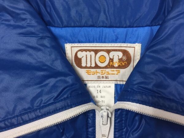Mot Junior モットジュニア 昭和レトロ スポーツ スキー レーシング モトクロス 子供服 中綿ジャケット キッズ 日本製 ナイロン100% 14 青 です。
