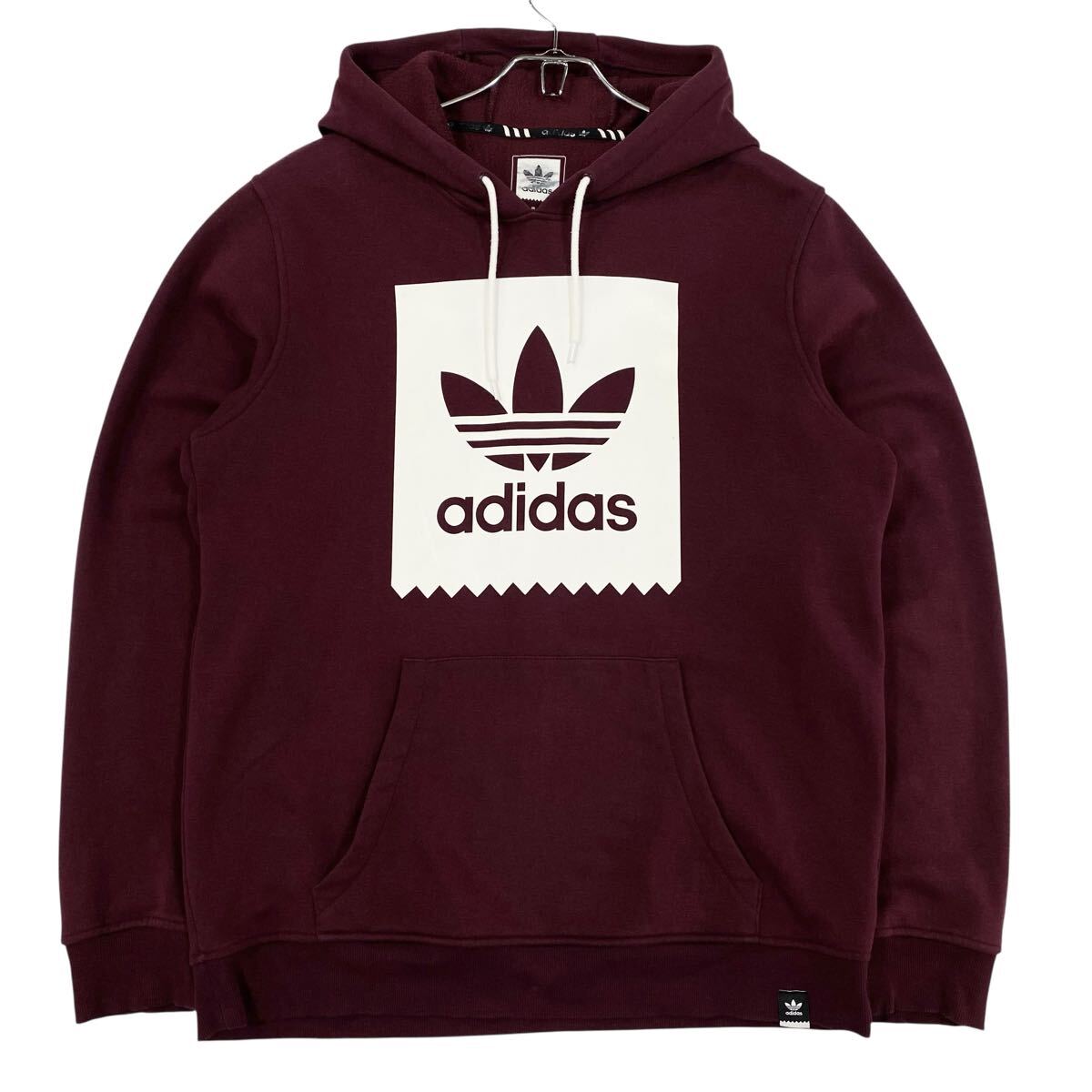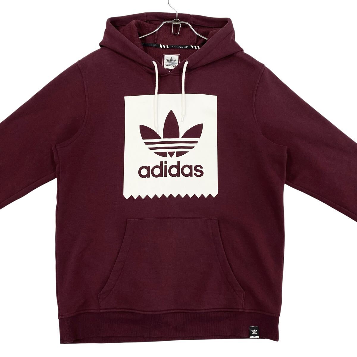 【adidas(アディダス)スウェットパーカー フーディ プリントロゴ 裏起毛 メンズO バーガンディー系】