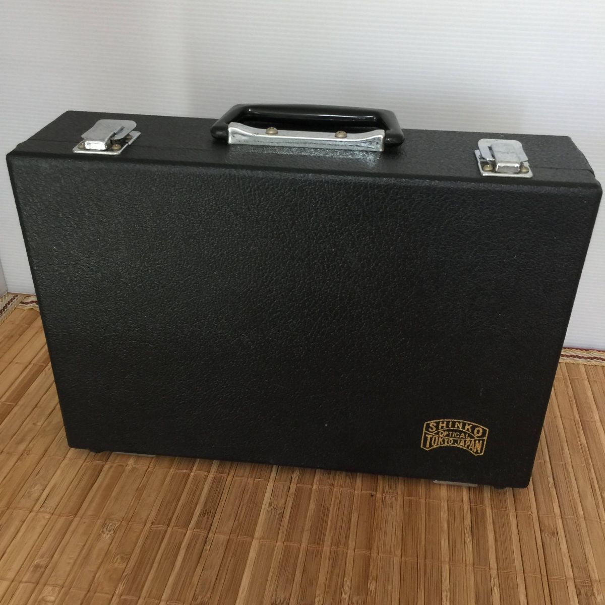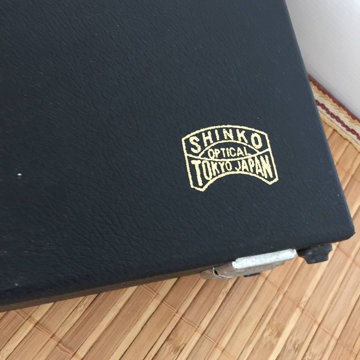 管ア【SHINKO OPTICAL TOKYO JAPAN ハードケース 木製 人口革張り トランク 内寸 約30×20×6㎝】