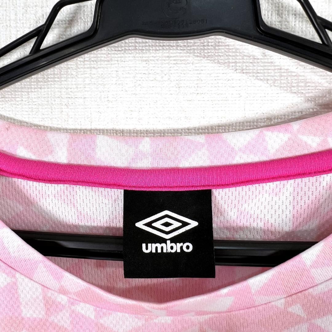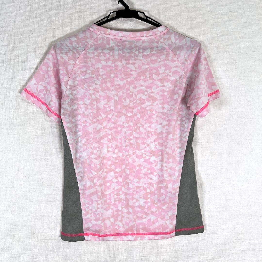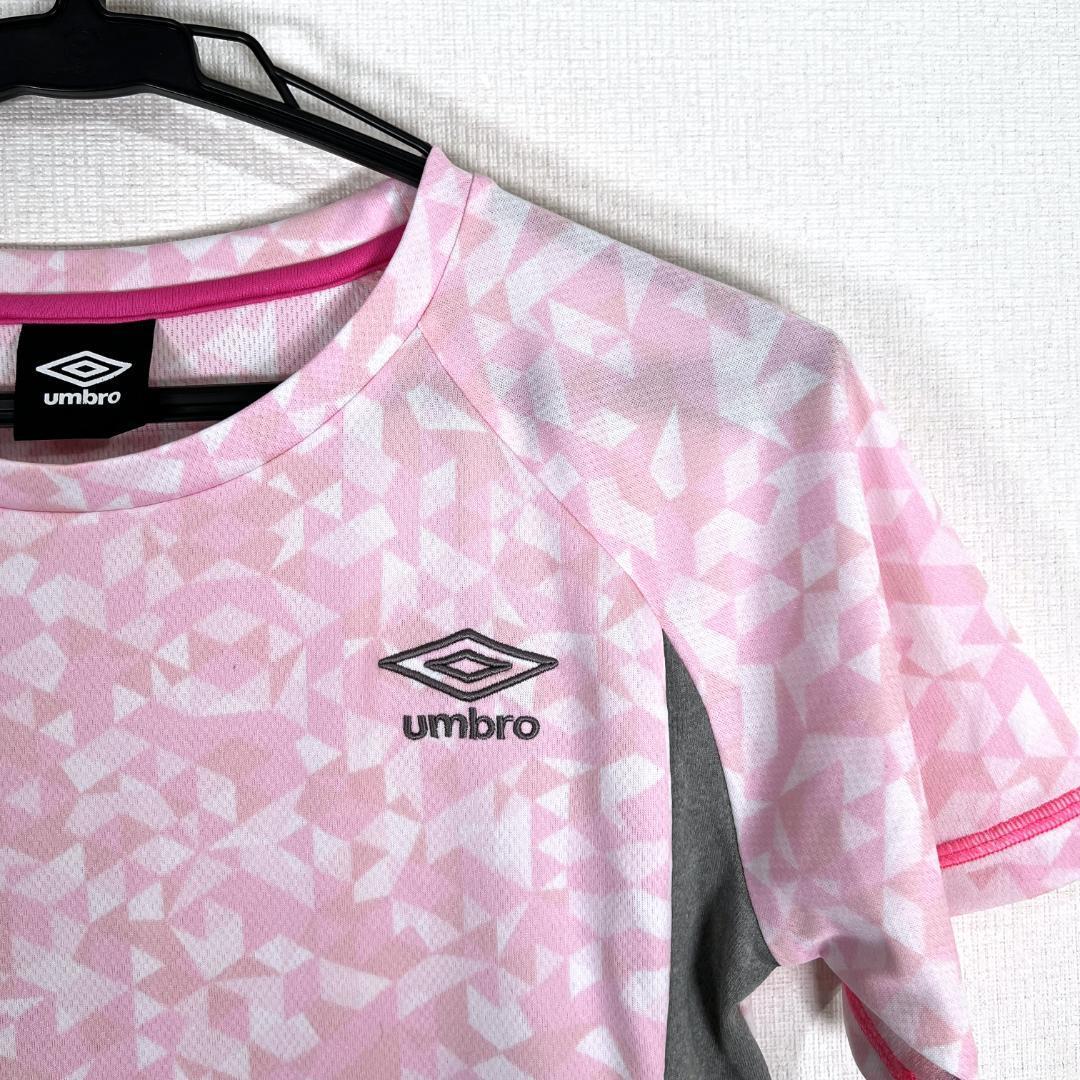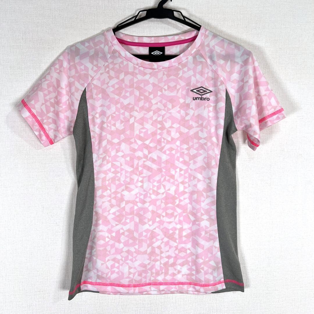【umbro】アンブロ ピンク×グレー 幾何学柄 半袖 Tシャツ スポーツウェア トレーニングウェア 女性用 レディース Mサイズ【a027】