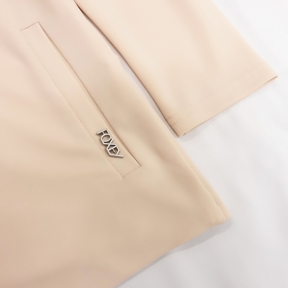 【フォクシー FOXEY NEW YORK ストレッチ パーカー ジャケット ブルゾン 七分袖 ダブルジップ ロゴ 38 S ベージュ レディース】 | |