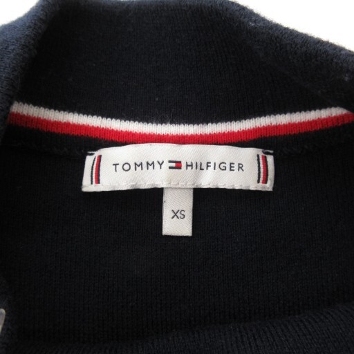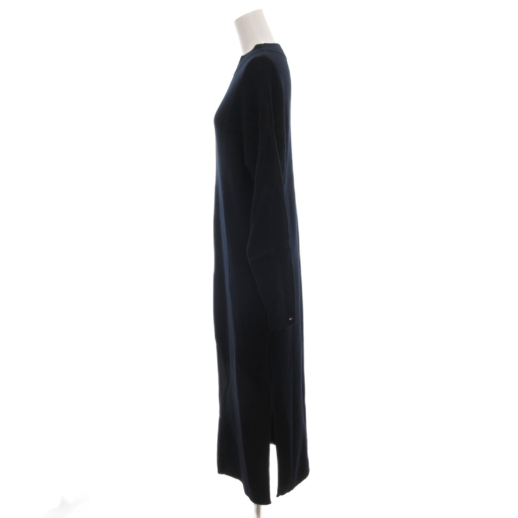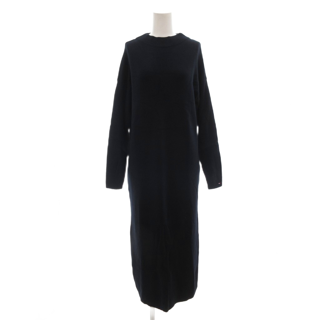 トミーヒルフィガー TOMMY HILFIGER ワンピース ニット ハイネック 刺繍 長袖 マキシ ロング XS 紺 ネイビー /AE レディース