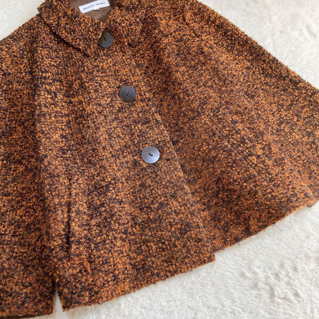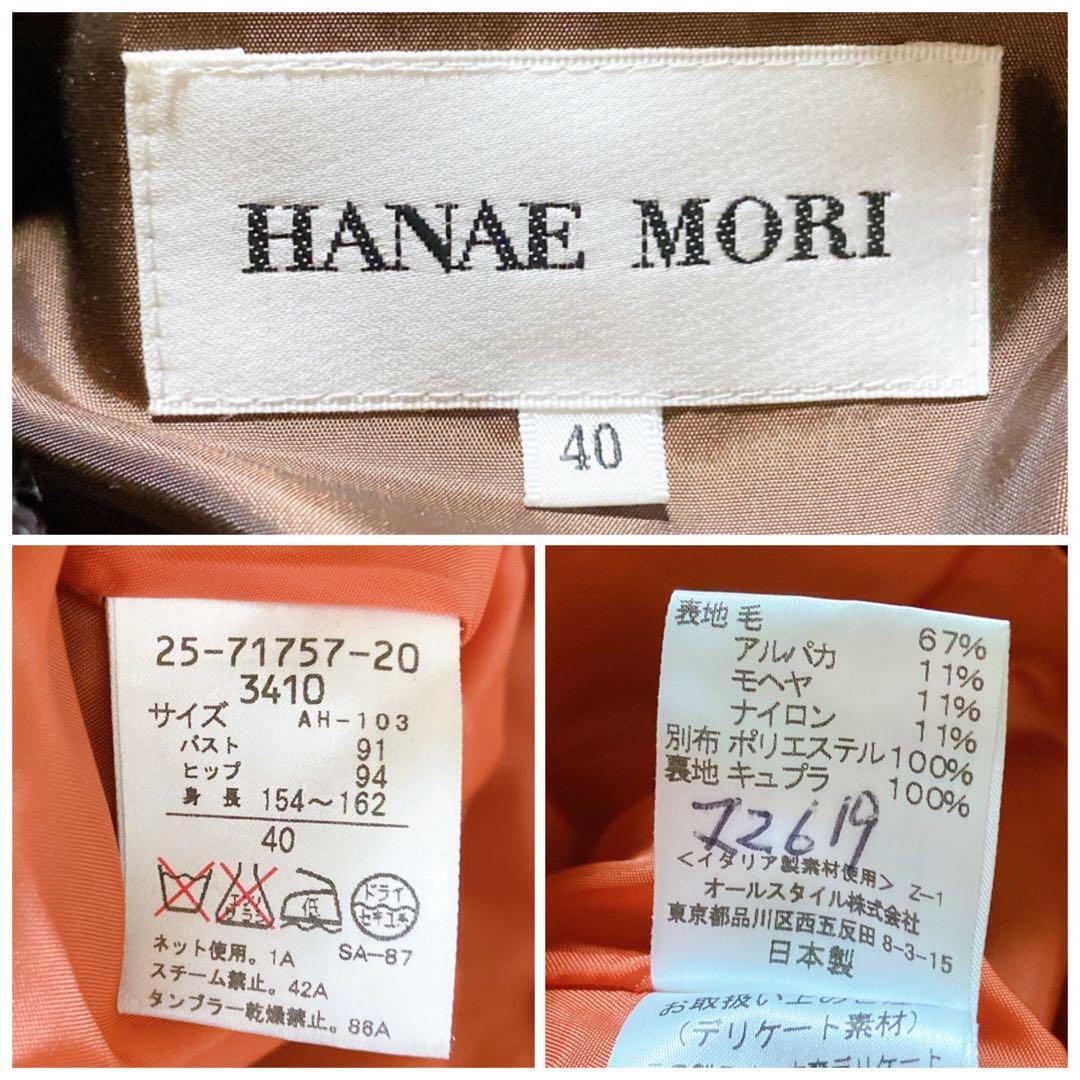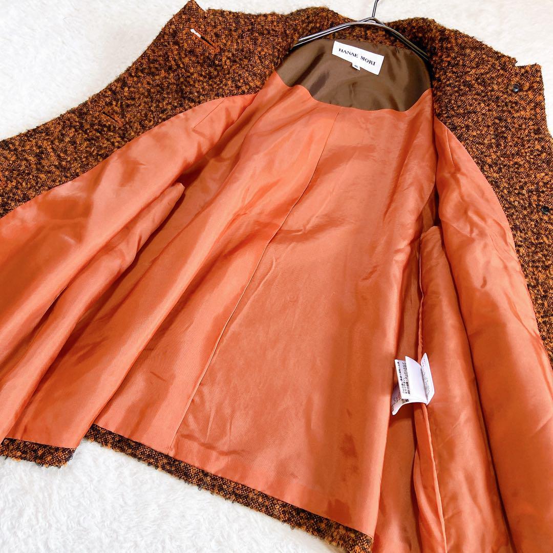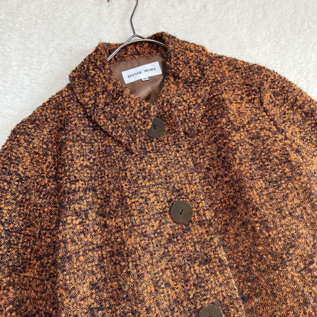 76-24 -大特価ー 【ハナエモリ】 ウール アルパカ モヘヤ混 ツイードジャケット (L) 日本製 HANAE MORI レディース テーラードジャケット