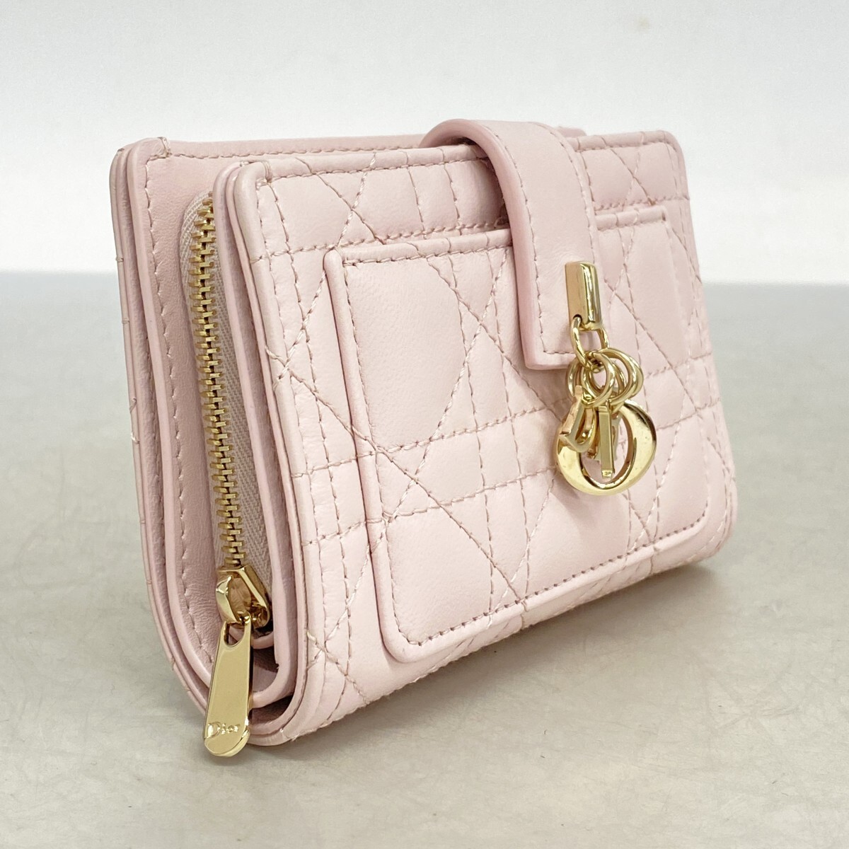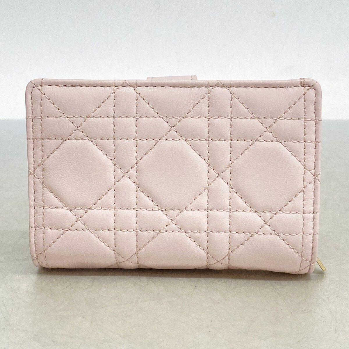 【5ib2691-h】クリスチャンディオール 財布 カナージュ レザー ピンク シャンパンゴールド金具【中古】レディース