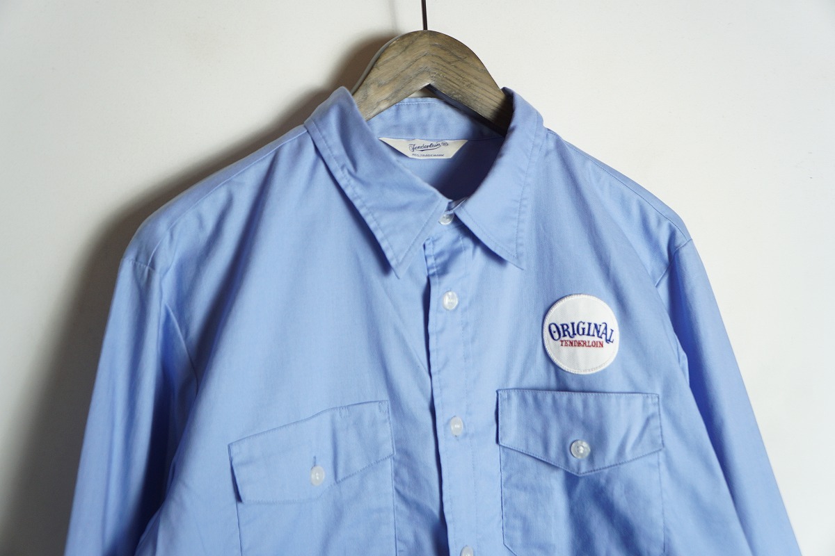 正規 TENDERLOIN テンダーロイン T-WORK SHT U サークル パッチ ワーク 長袖 シャツ ロングスリーブ 日本製 青 ブルー XS 本物 815P★2
