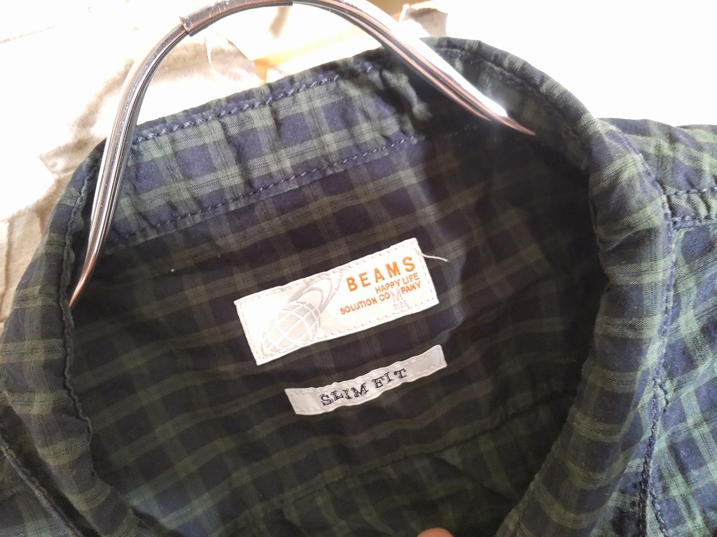 men's J356 BEAMS ビームス チェック柄 長袖 シャツ M ネイビー/グリーン系 ネコポス発送可