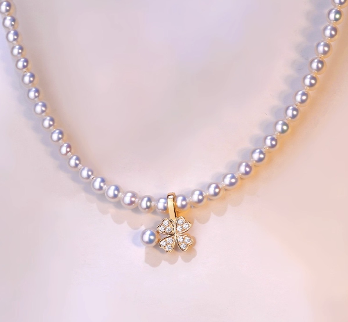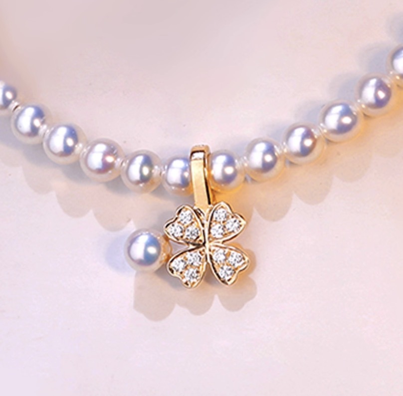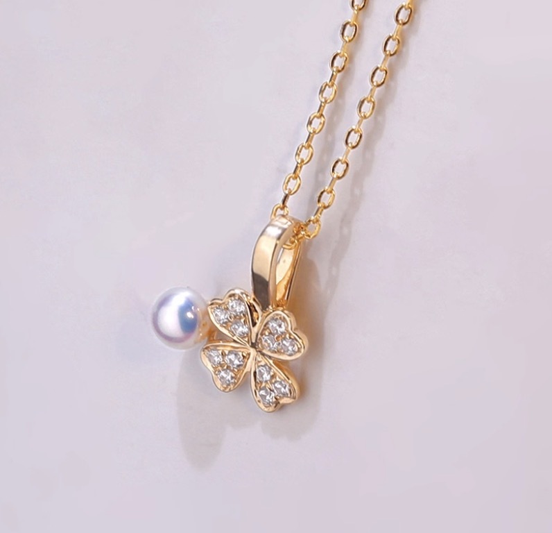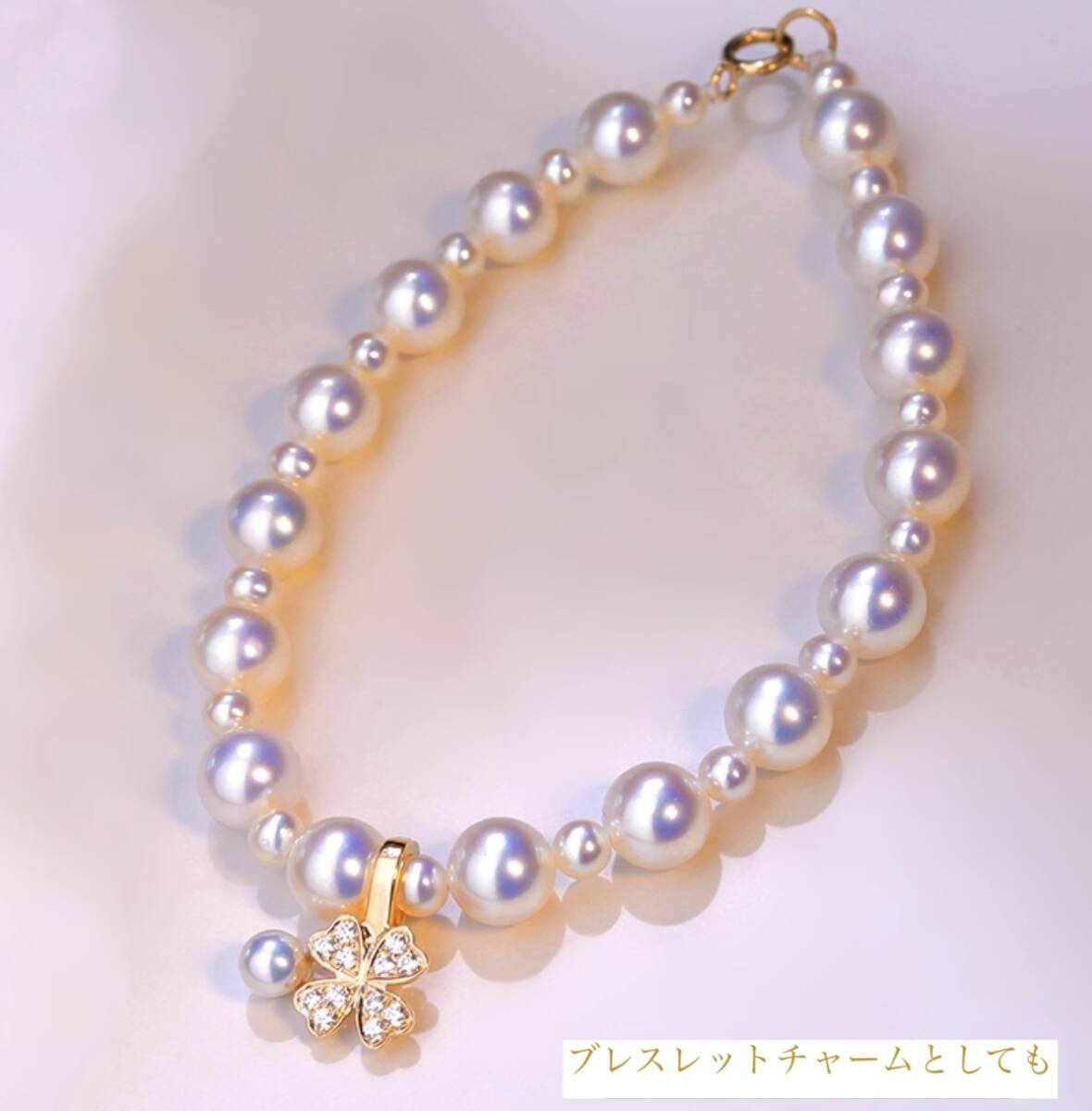 K18YG クローバー チャーム あこや真珠 18金 ペンダント ネックレスチャーム 四ツ葉 18K 開口 バチカン ジルコニア ブレスレットチャーム