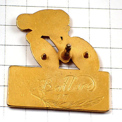 | ピンズは、裏側に針が付いており、金属の留め金でとめるようになっています。 留め金が付属しています。新品の留め金も一緒に発送いたします。 | |