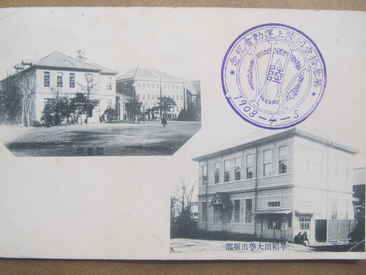 明治41 早稲田大學【図書館、出版部】繪葉書1枚