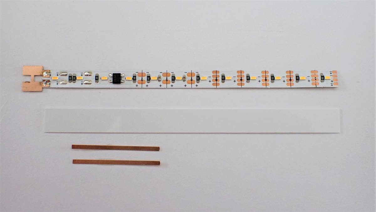 Nゲージ車両用新LED室内灯「グランライトⅢ」カトー用(ハンダ付不要/簡単取付)6両セットです。KATOの車両に取付できます。室内灯ユニットは幅8mm,厚1.0mm,長さ137.5mmでLED12個です。LEDは画像の通りカットでき,通勤/近郊形から寝台車両,新幹線などほとんどの車両に取付でき,車端まで均一に綺麗に点灯いたします。カットしたLEDは室内灯ユニットに追加,またはストラクチャーなどに再利用できます。取付は室内灯ユニットの電極板をペンチなどで折り曲げます。直接またはプラ板に貼って屋根裏に貼るか,またプラ板に貼って床下にセットしても出来ます。1両あたりの内容は電極板付き室内灯ユニット(12LED) x 1 集電シュー x 2, プラ板 x 1,最大消費電流14mA/1両あたり。照度はグランライト/プレミアムより絞った明かるになります。チラツキ防止コンデンサーを2個実装しております。点灯色はナチュラルホワイト色(昼白色)です