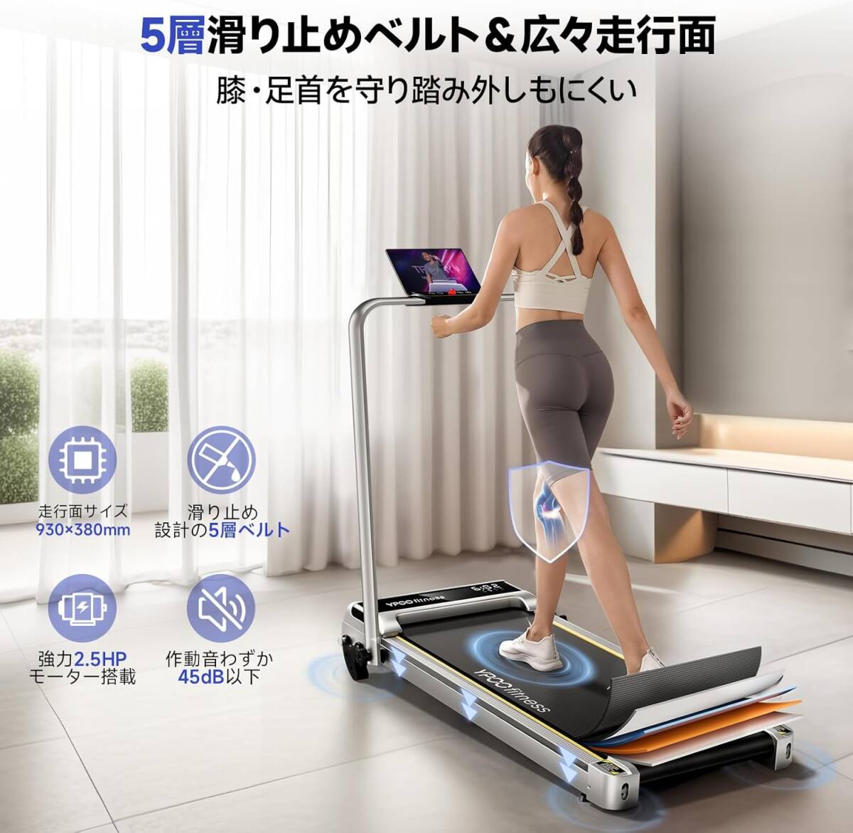 YPOO ルームランナー 家庭用 MAX8km/h 【全世界累計販売500万台突破】 折りたたみ式 ランニングマシン 3段階手動傾斜