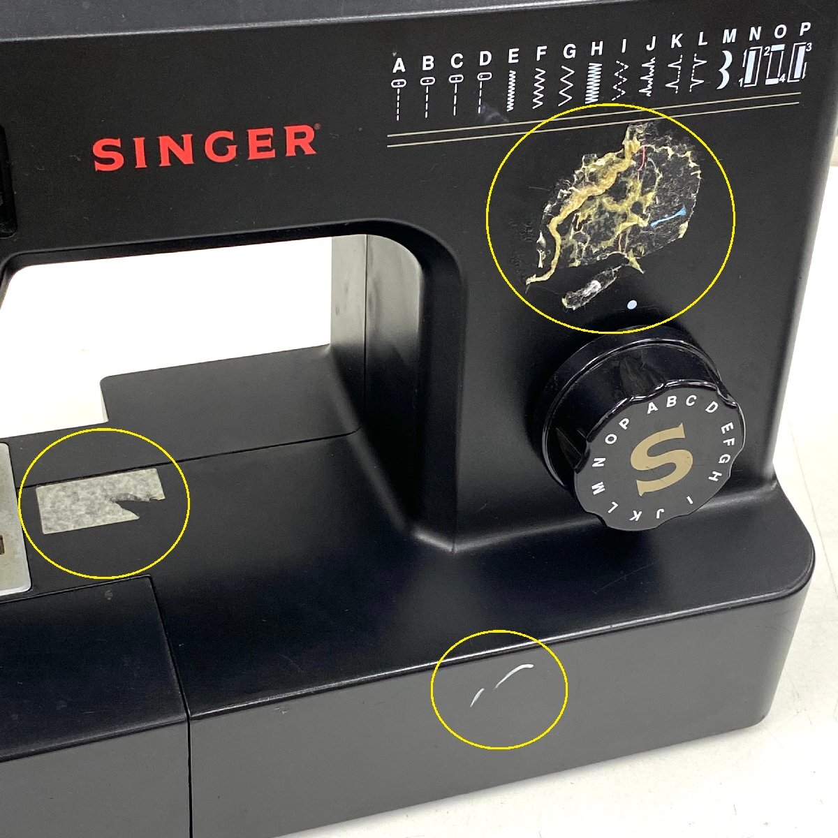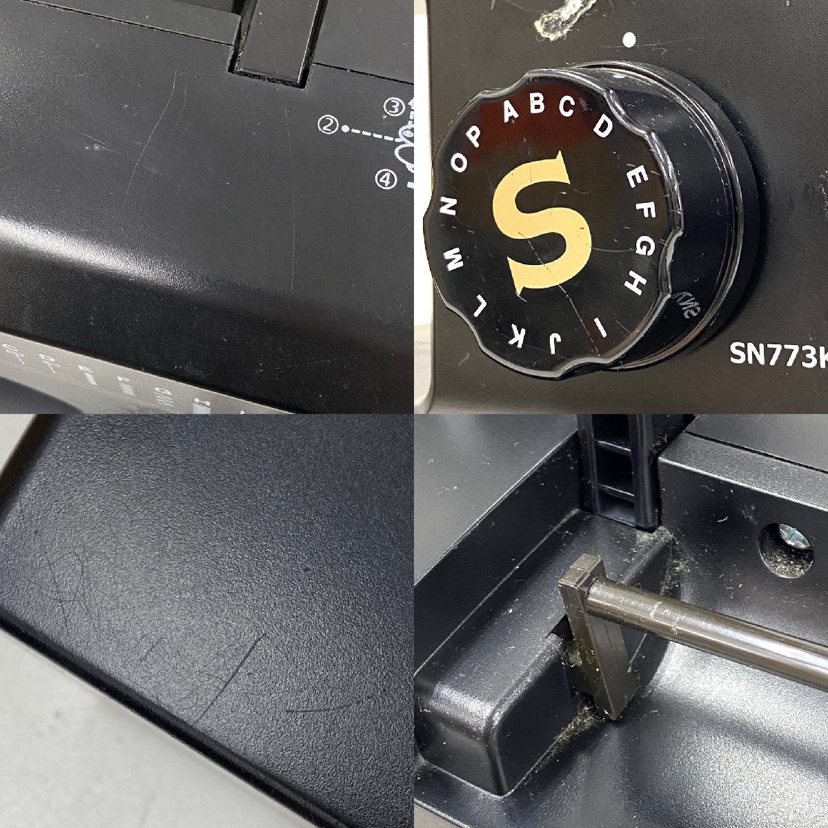 ・4ヶ所にシールの剥がし残りや粘着剤残り/繊維付着(側面の粘着剤残りの部分にフックが貼りつけられている状態) ・正面下部に目立つ白い汚れ ・多数の擦れや傷 ・溝や隙間等に埃や塵溜まり 【針/金具】 ・埃や塵付着、錆や変色、擦れや傷、針欠損 |