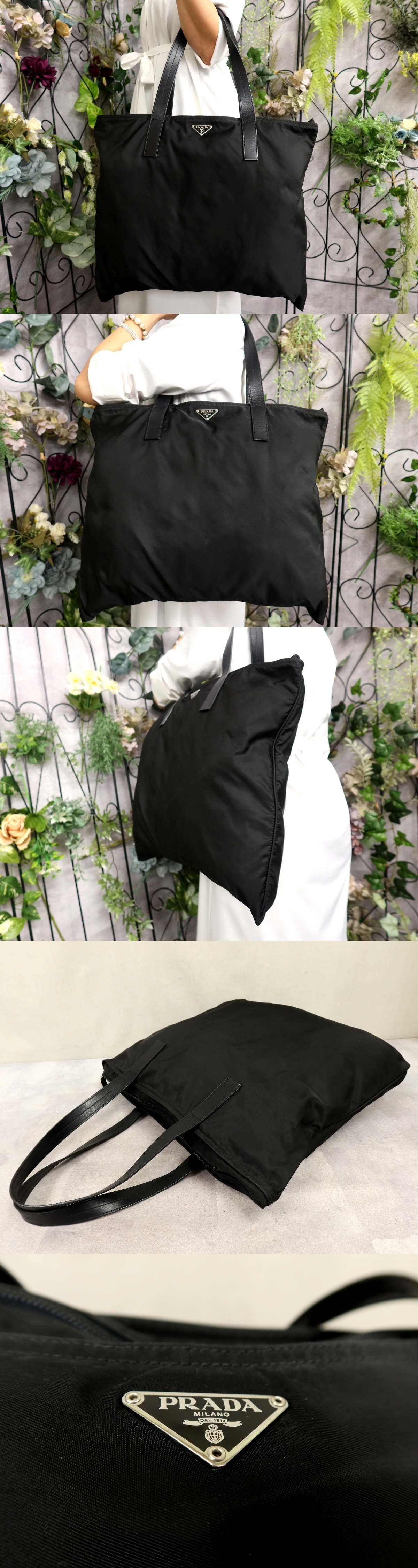 ●超美品●PRADA プラダ●三角ロゴプレート●ポコノ ナイロン カーフ レザー 本革●トート バッグ●黒●SV金具●肩掛け●A4 収納●Js60412
