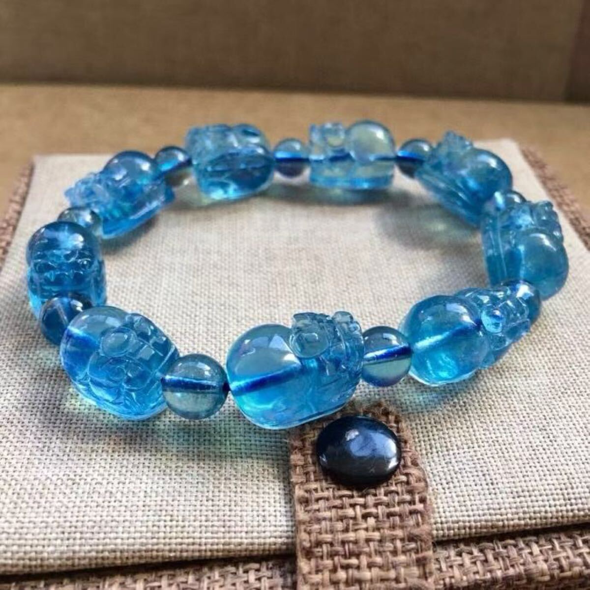 アクアマリンはその名の通り海の色をした宝石だが、海に投げ入れると瞬時に溶け込んでしまうと言われるほどで、その事から古いヨーロッパの船乗り達は、この石を海の力の宿ったお守りとして大切に持っていた。ブラジルのサンタマリア鉱山で採掘される深いマリンブルーの石が最高品質とされているが、現在は枯渇状態である。しかし最近では他の鉱山でもこれと同様の品質の石が採掘されており、現在ではこの深いマリンブルーの物を一般的に「サンタマリア」若しくは「サンタマリア・アフリカーナ」と呼んでいる。それ以外にも産地としてはスリランカ、マダガスカル、ロシア、パキスタン、アフガニスタン、インドなどが知られている。
