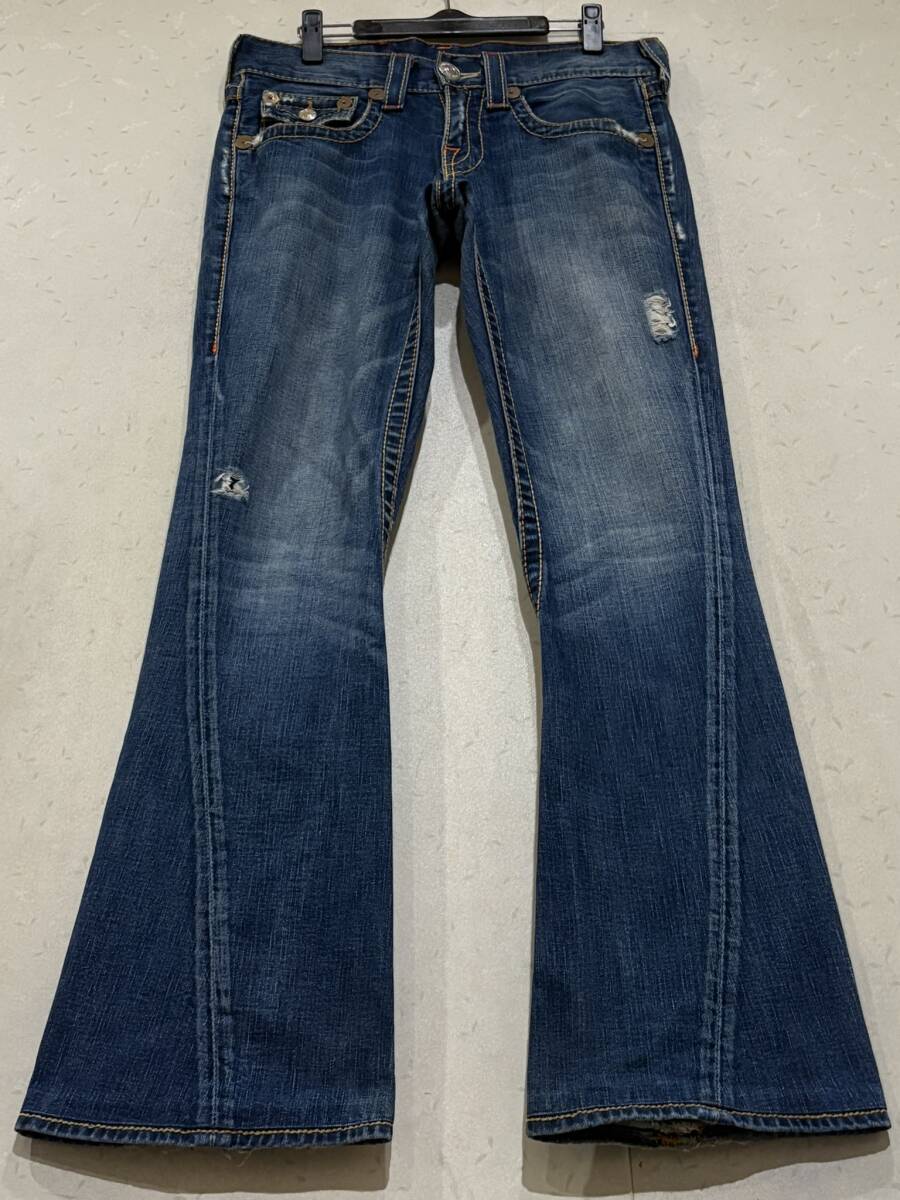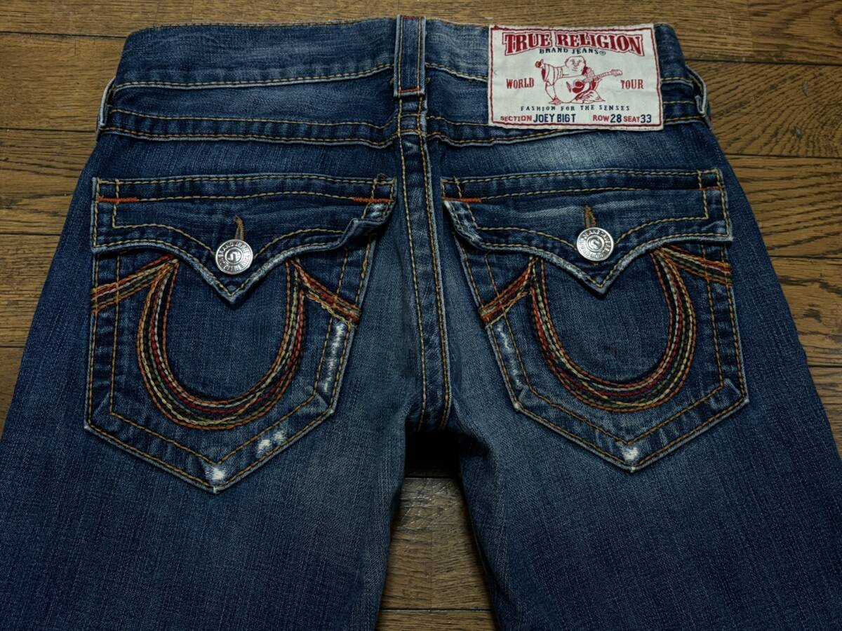 TRUE RELIGION トゥルーレリジョン JOEY BIGT レインボー ダメージ加工 デニムパンツ インディゴ 米国製 28                  BJBE.I