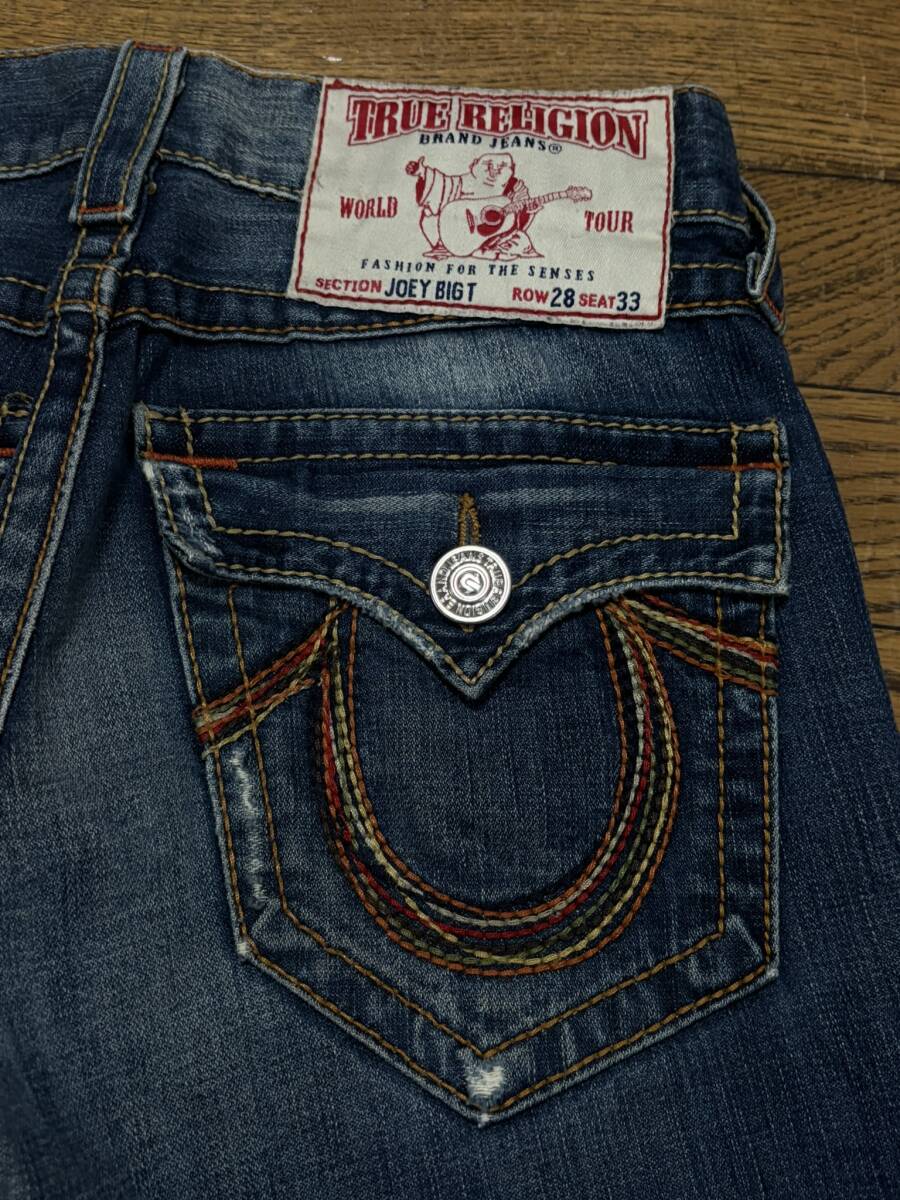 ※TRUE RELIGION トゥルーレリジョン JOEY BIGT レインボー ダメージ加工 デニムパンツ インディゴ 米国製 28   BJBE.I
