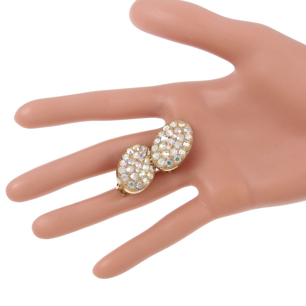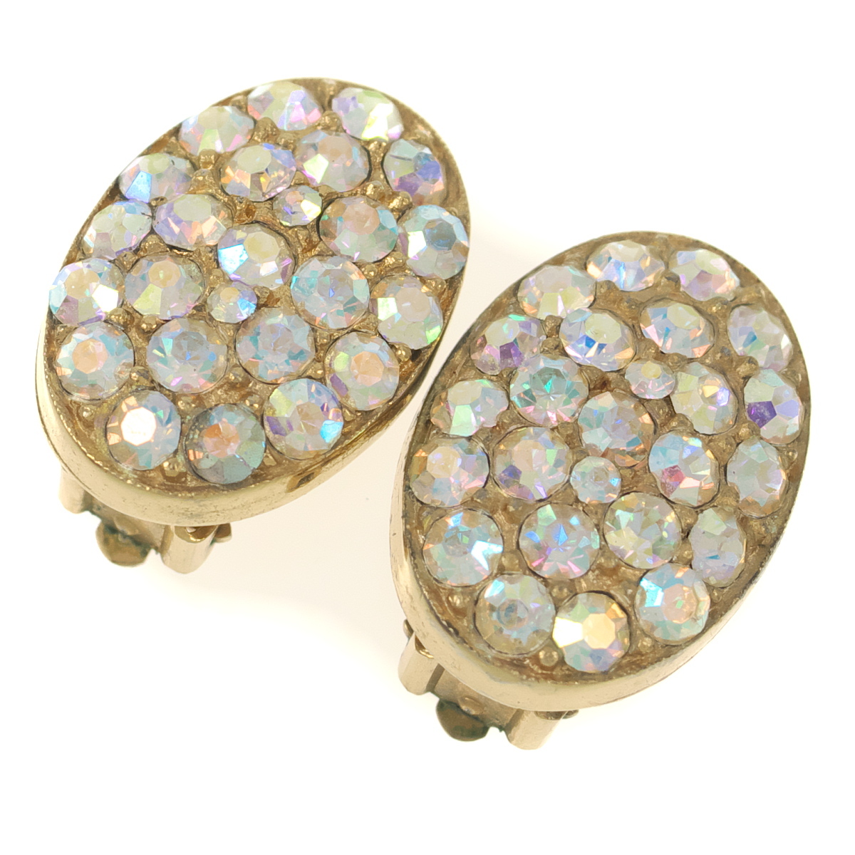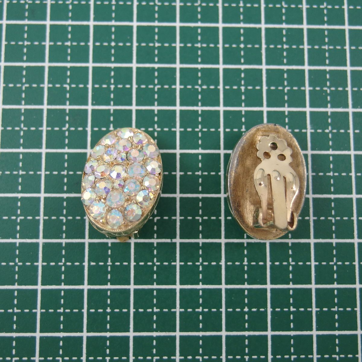A10730◆ オーロララインストーン オーバルシェイプ ◆ ヴィンテージイヤリング ◆