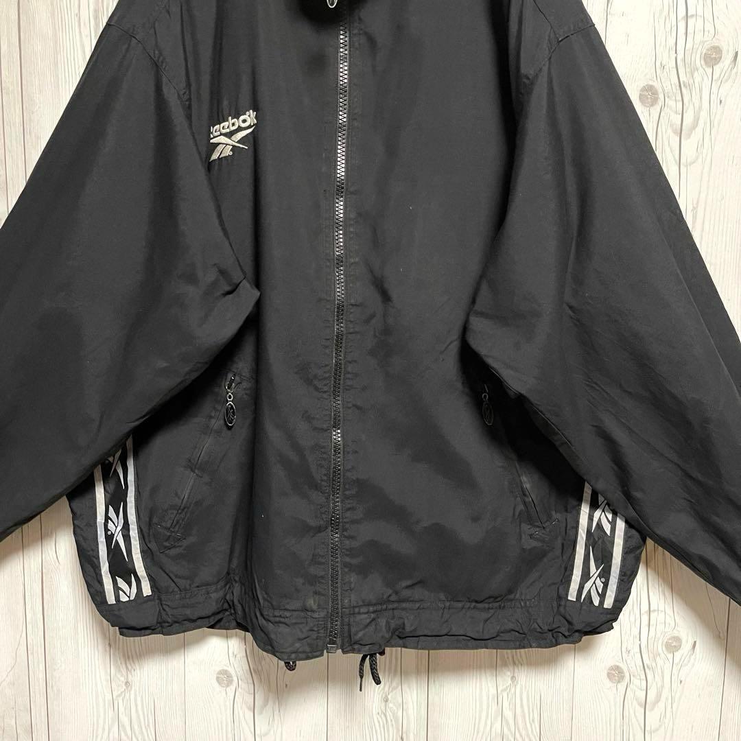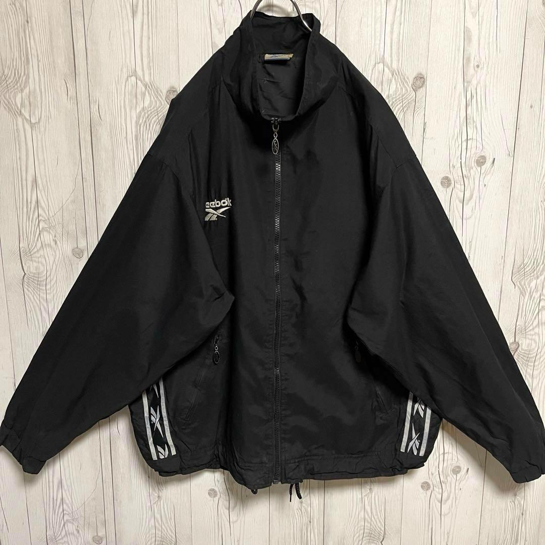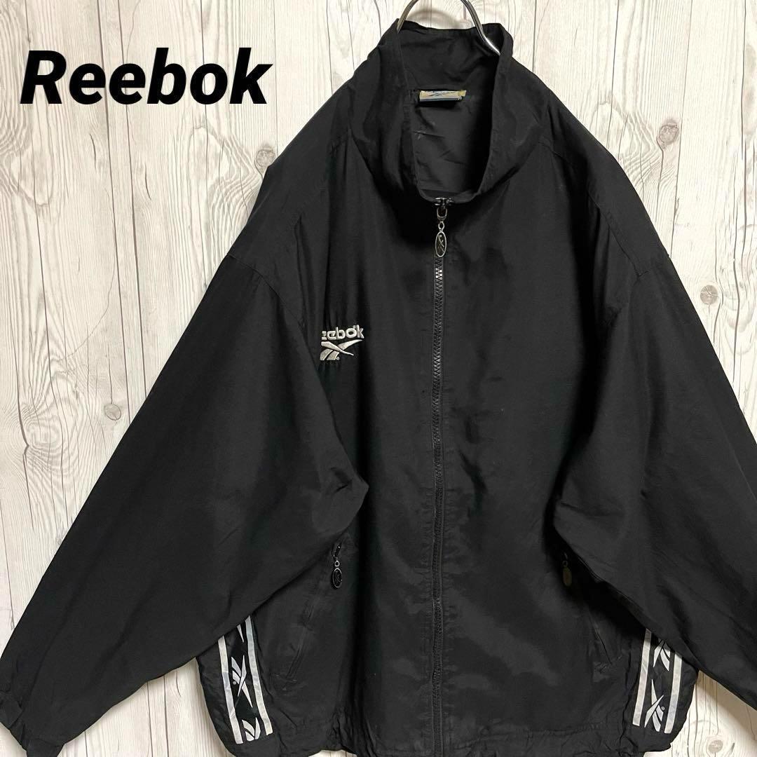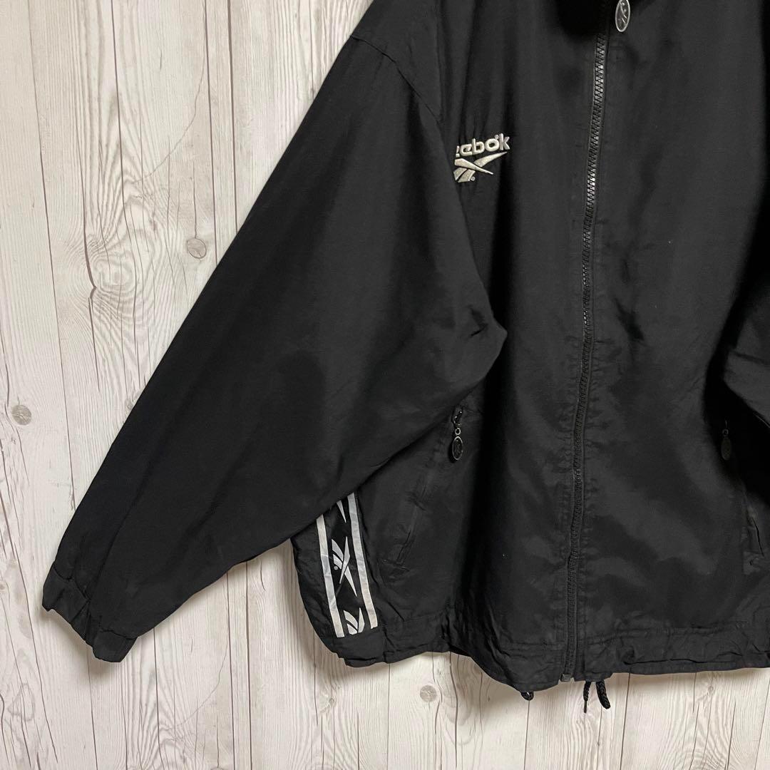 Reebok リーボックス ナイロンジャケット ブラック黒 ロゴ刺 XLサイズ相当 ブルゾンジャンバー 古着男子