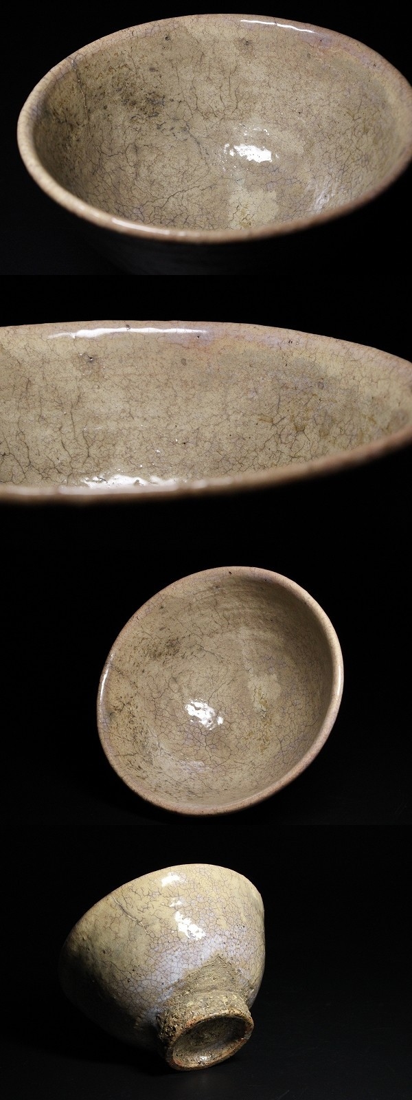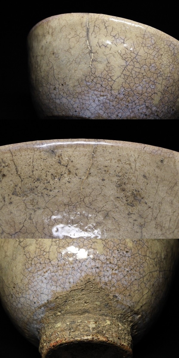 | 商品説明 | 状態 : 口辺から一本古い修繕箇所が見られます。 何かは判然としませんが、高台付近にブラックライトに反応する細かい付着が御座います。 腰付近に釉薬の剥離箇所が見られます。 時代物という事もあり、それ程気にはならないとは思いますが、念の為掲載させて頂きました。 画像にてご確認下さいませ。(画像最下部) たっぷりとした振りの大きい容姿に、経年変化による釉薬の奥ゆかしさが風格を醸し出しています。 中々お目に掛かれないと思いますので、この機会に是非如何でしょうか。 径 14.5cm 寸法 : 高さ 8.3cm 箱 : 時代箱 |