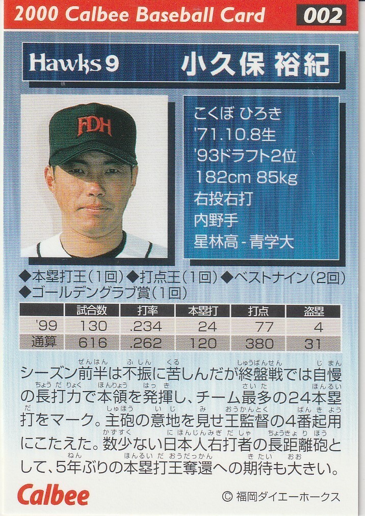 ●2000カルビー【小久保 裕紀】プレ版:金箔押サインパラレル No.002:ホークス