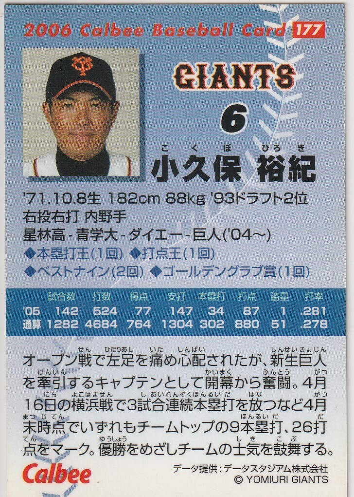 ●2006カルビー【小久保 裕紀】BASEBALL CARD No.177::巨人 R 120/240