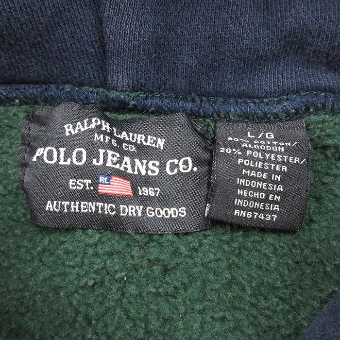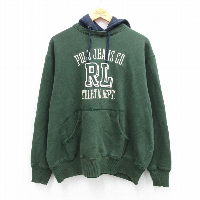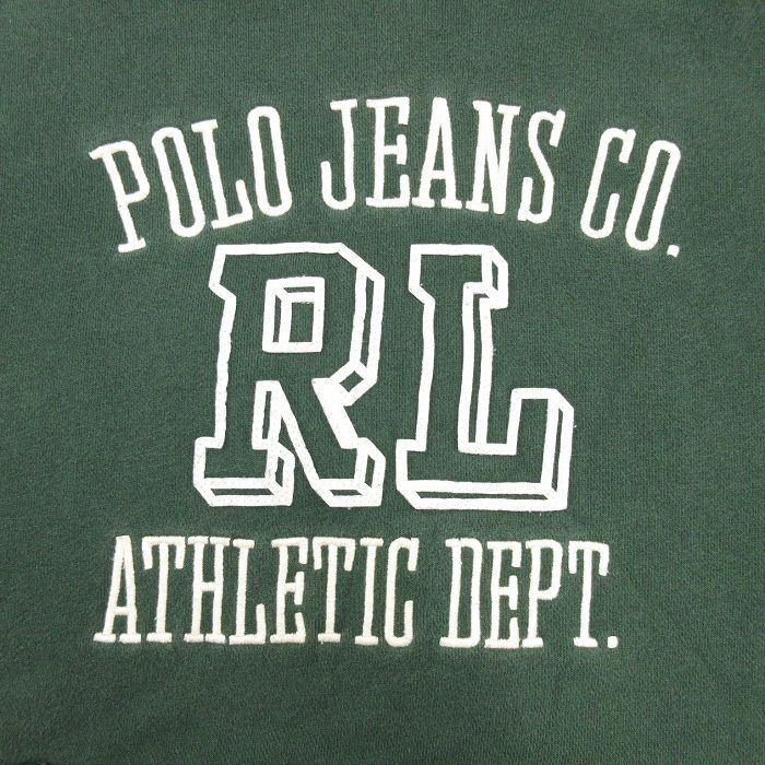 【商品名】 XL★古着 ラルフローレン ポロジーンズ 長袖 スウェット パーカー メンズ 00年代 00s ビッグロゴ 刺繍 大きいサイズ クルーネック 緑【spe】