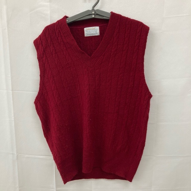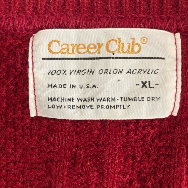 A690 キャリアクラブ XL アメリカ古着 USA製 アクリル Vネック ニット ベスト レッド Career Club レディース