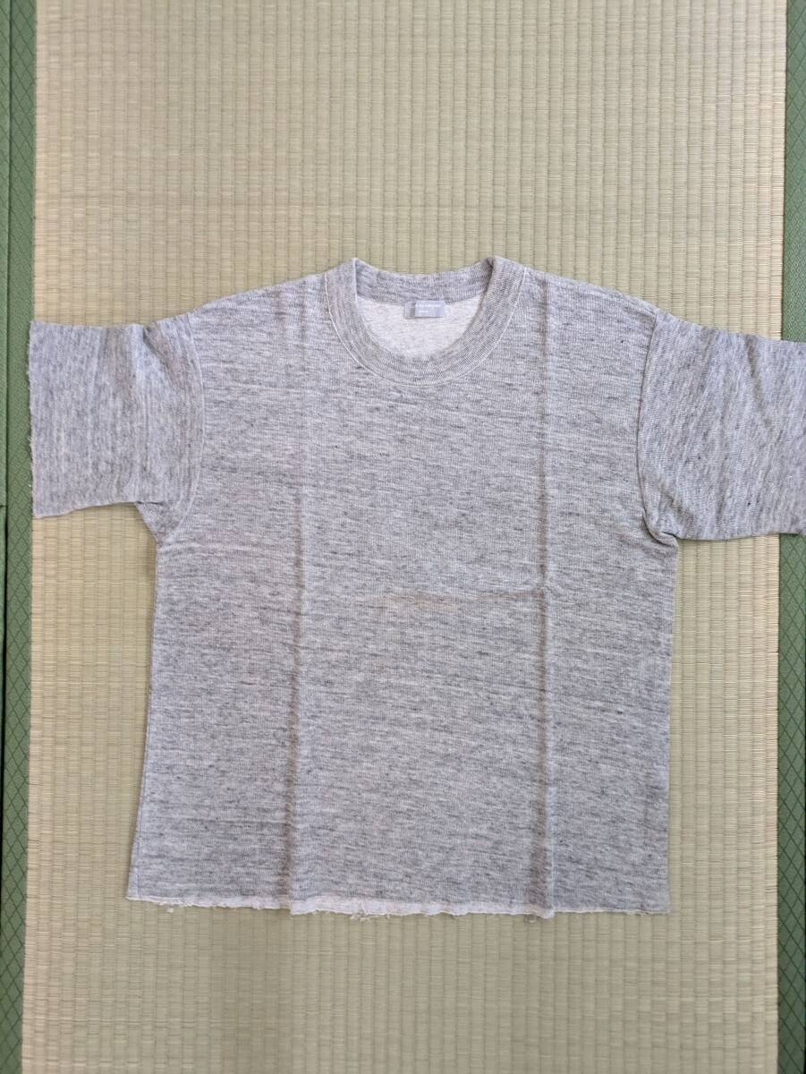 90年代(田中期)のCOMME des GARONS HOMMEの霜降りグレーのクルーネック、スウェット地のTシャツです。袖口と裾が切りっ放しのようなデザインになっています。当時、ワンシーズンからツーシーズン使用。クリーニング後、長年タンスで保管しておりました。