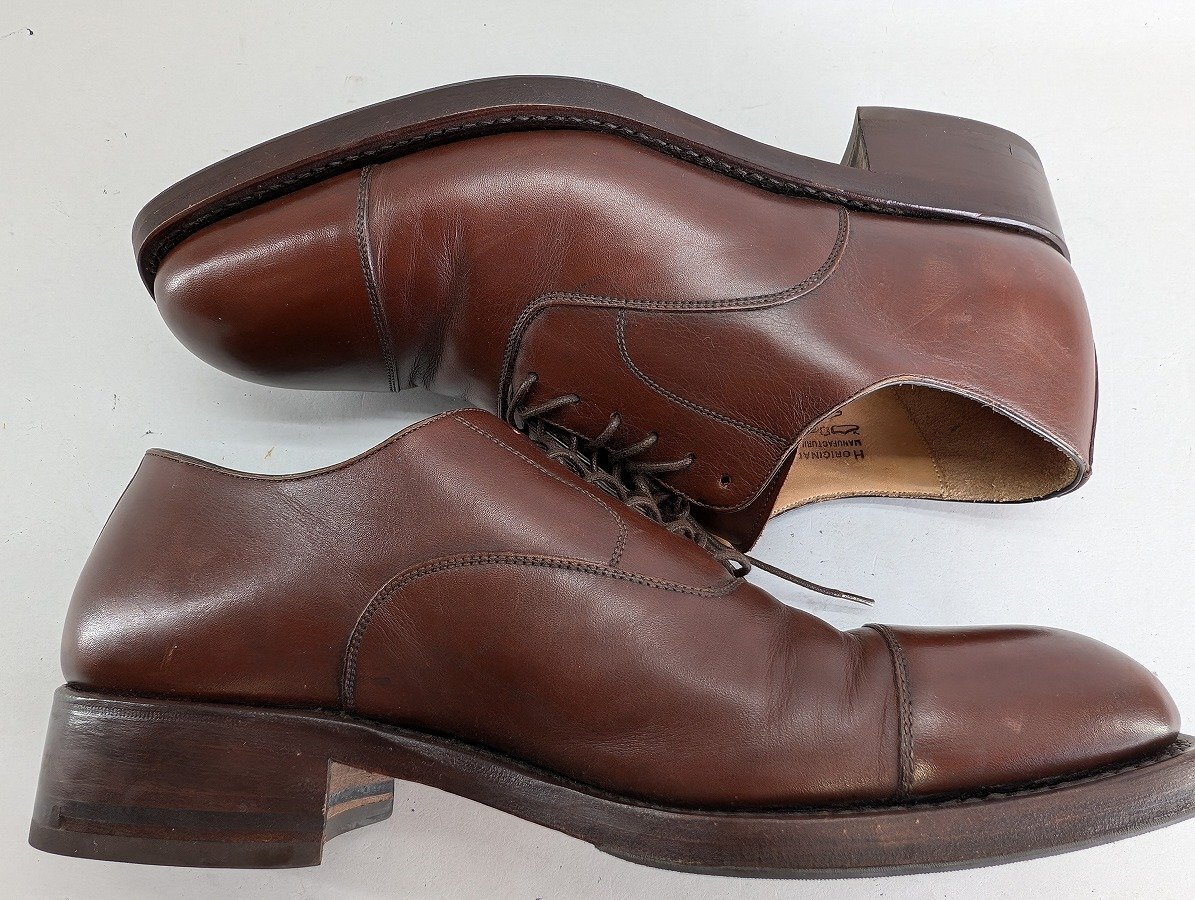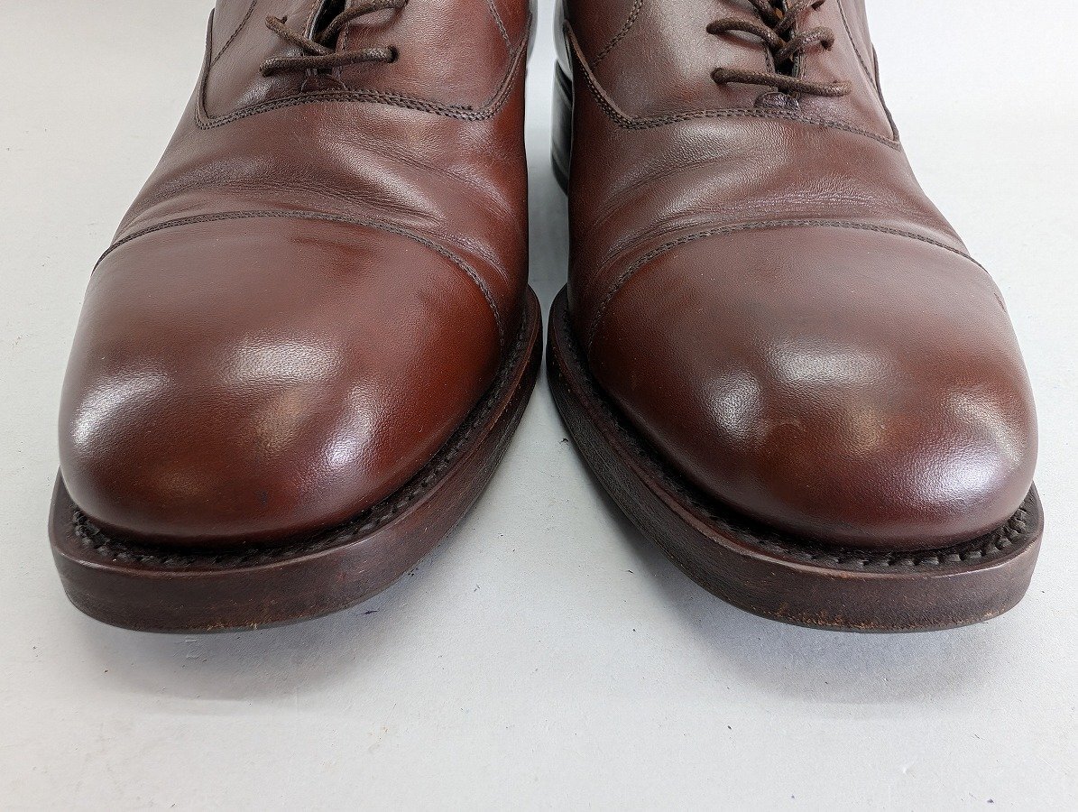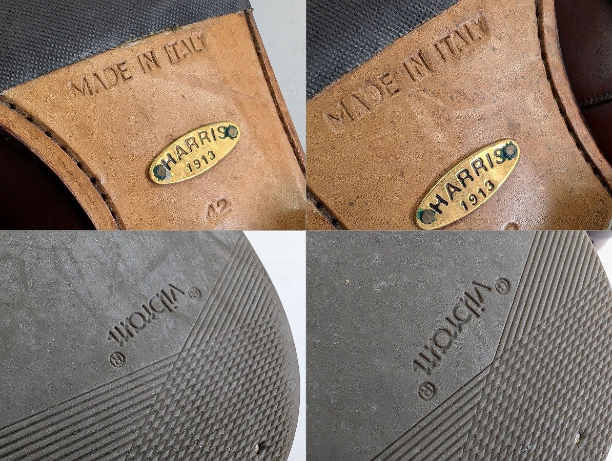 外観に強い使用感はありませんが、各所に小さなスレがあります。 靴底にはVibramのソールが張られています。張り替えの履歴は不明です。 内装には若干のスレ、印字の滲みがみられます。 写真や記載にない不具合があるかもしれませんが、現状渡しにてご容赦ください。 完全な状態をお求めの方、細かい点が気になる方はご入札をお控えください。 ノークレーム・ノーリターンでお願いいたします。 |