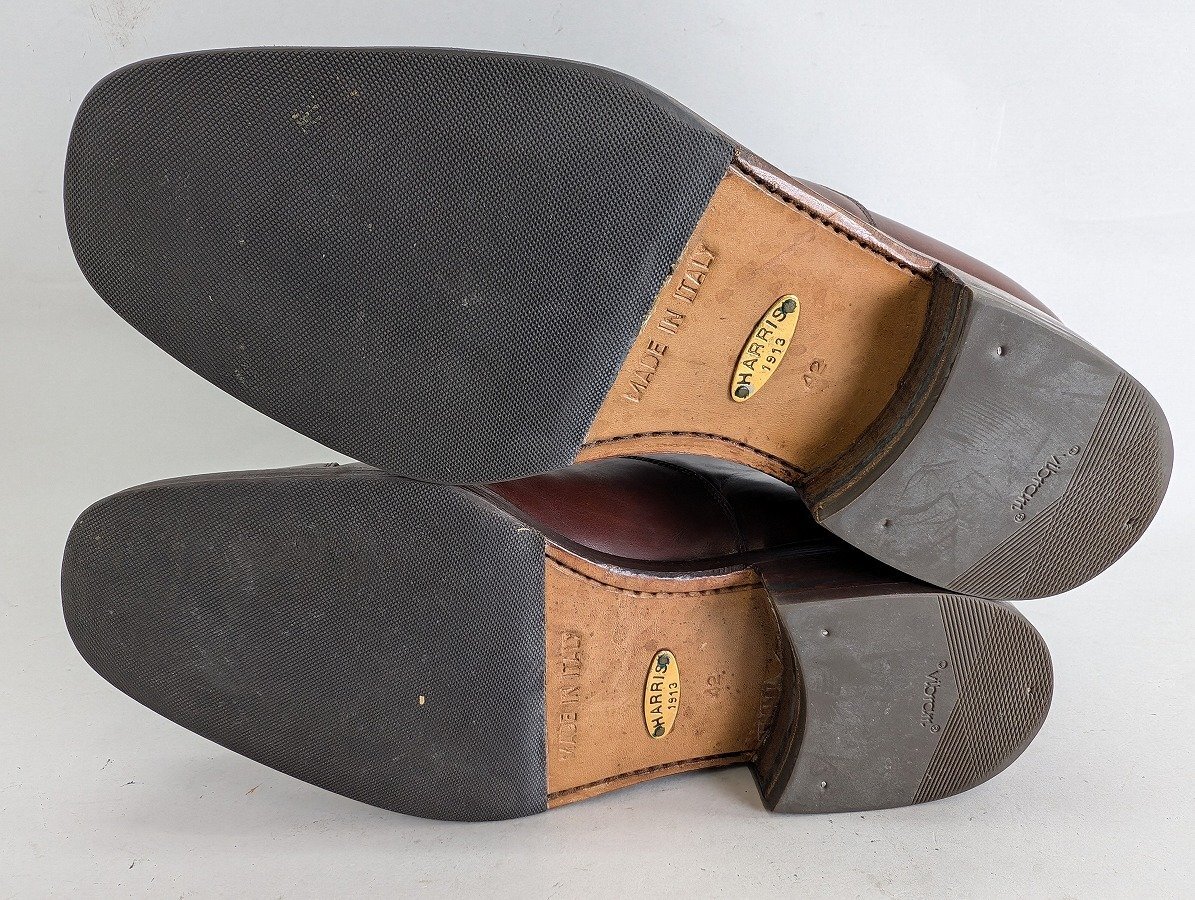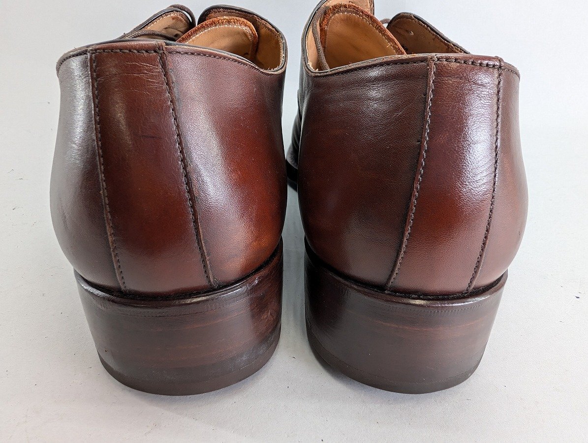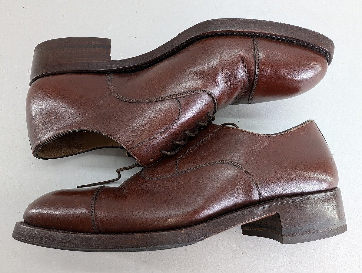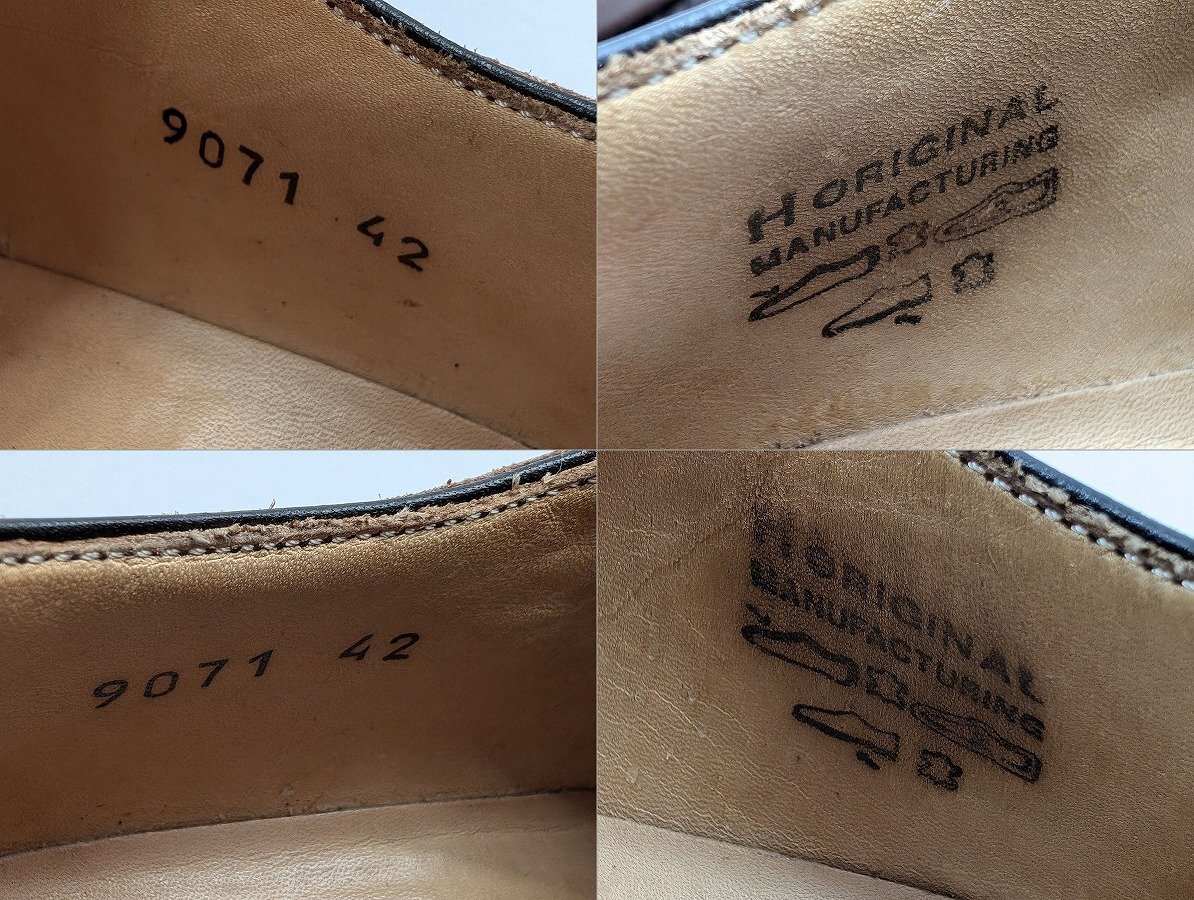 外観に強い使用感はありませんが、各所に小さなスレがあります。 靴底にはVibramのソールが張られています。張り替えの履歴は不明です。 内装には若干のスレ、印字の滲みがみられます。 写真や記載にない不具合があるかもしれませんが、現状渡しにてご容赦ください。 完全な状態をお求めの方、細かい点が気になる方はご入札をお控えください。 ノークレーム・ノーリターンでお願いいたします。 |