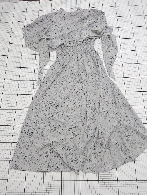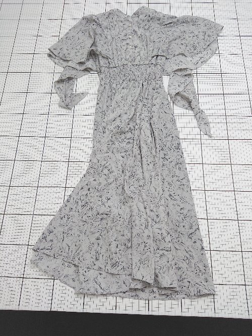 ◇ ⊂ abc une face エービーシーウネフェイス オーガニック系 - ロング 総柄ギャザーワンピース サイズM グレー系 レディース E