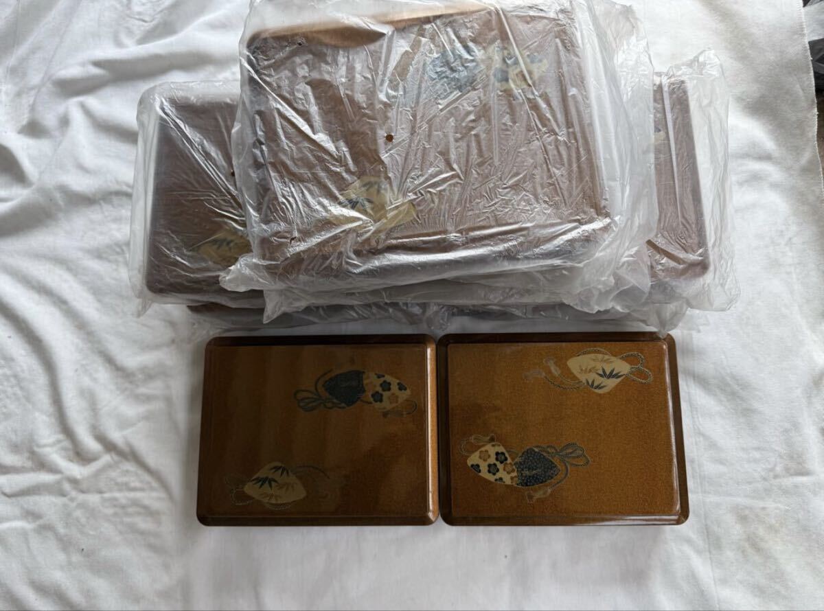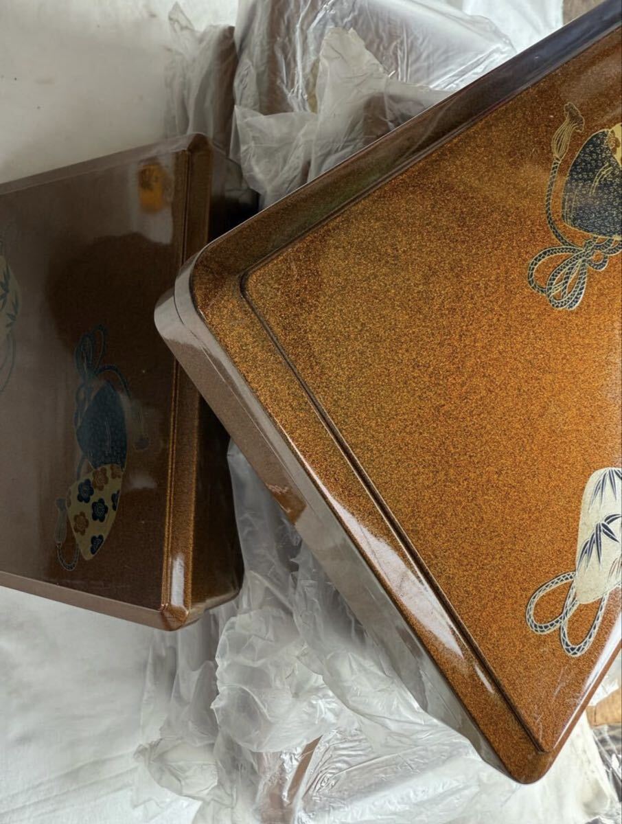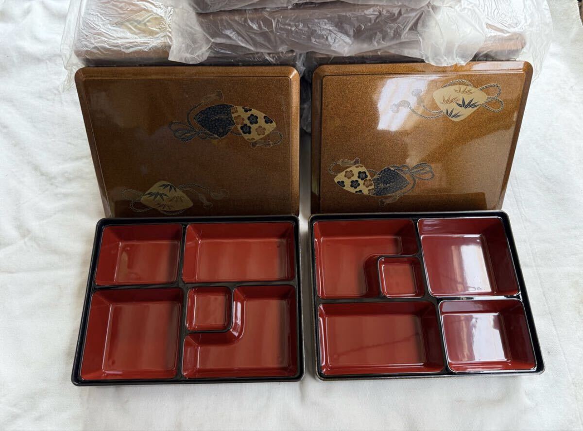 *松花堂 弁当箱 割烹漆器梨地貝合わせ 仕出し屋 弁当屋 行楽 お花見 業務用弁当 10箱 10個 長期間保管品