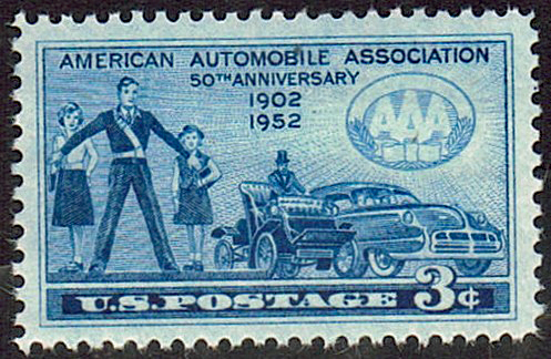 【アメリカ】 1952.3.4発行 「米国自動協会50年」 3c 1種完 単片 未使用 NH