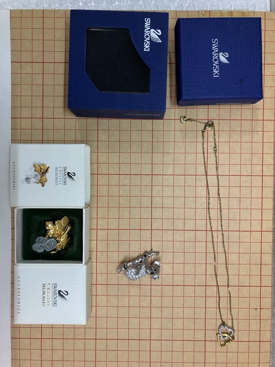 【宅急便コンパクト】スワロフスキー おまとめ 使用済ネックレス+新品ブローチ2ケ【スワロフスキー】
