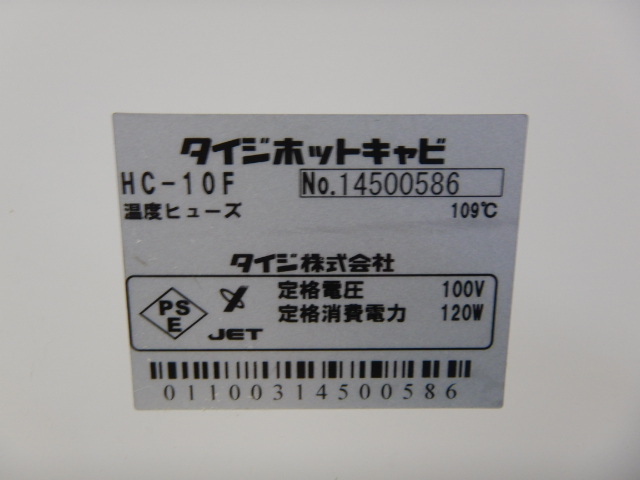 2014年製 タイジ ホットキャビ HC-10F 100V 120W 10L 50本 W350D275H290mm 5.5kg 温蔵庫 おしぼり ウォーマー ホットボックス