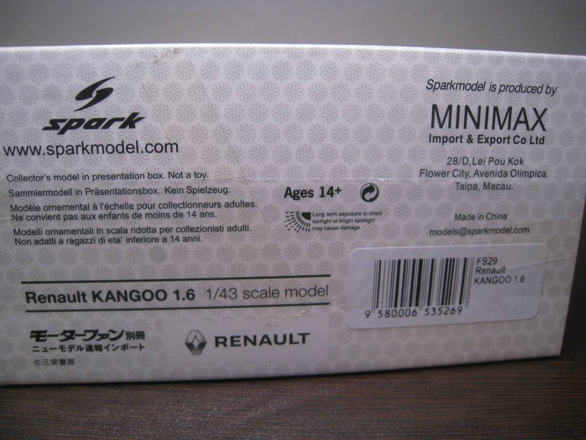★ スパーク 1/43 ルノー カングー1.6 黄 S3186