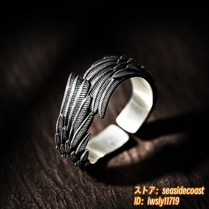 1円スタート◆ 指輪 シルバー 925 リング 羽毛 天使 希望 ドクロ アクセサリー メンズ レディース 男女兼用 フリーサイズ 調整可能