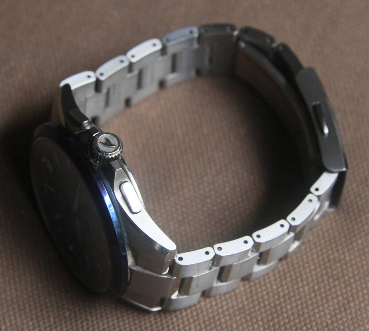 | 商品説明 | ●最初に「訳あり」について説明します。本品は国内で使用する電波時計として電波受信は正常で、日付・曜日・時・分・秒の全てを正しく表示しています。ボタン操作は普通に出来ます。所が「りゅうず」が固着していて全く動きません。そのためストップウオッチへのモード切替やワールドタイムの設定・切替が出来ません。以上が訳ありの内容です。 ●私のデジカメでは本品の素晴らしいデザインをうまく撮れないので、写真1は本モデルのメーカーカタログ写真にしました。この姿が現品の外観や雰囲気をかなり正しく写しています。写真2以降は現品の実写です。 ●カシオ(CASIO)の高級ブランドであるオシアナス(OCEANUS)クラシックラインとしてそのコスパの高さからロングランベストセラーになったT2600シリーズです。 ●型式はOCW-T2600G-1AJF(定価税込121,000円)となります。T2600シリーズのバージョンアップモデルとして1万円高で追加発売された魅力的なモデルです。 ●本品の魅力はそのデザインです。「空から見た夜の地球」をデザインコンセプトにしたオシアナスを代表する見事なデザインです。ブルーのベゼルが宇宙空間で、地球の明かりを表現したゴールドリングに囲まれた文字盤が地球です。このデザインは他モデルにも採用しているオシアナス共通コンセプトです。 ●T2600シリーズの特徴の一つは2都市の時刻を同時に表示出来る「デュアルタイム」機能です。世界を相手に仕事をされている方には大変便利です。海外旅行時には日本時間も同時表示できて便利です。 ●機能的には、100m防水、フルオートカレンダー(曜日・日付)、マルチバンド6、デュアルタイム表示、など多機能です。 ●本体ケースとベルトがチタンなので傷に強くて軽く、本体重量は実測79gで大変軽量です。 ●ベルトは現状腕周り17cmになっています。余りコマが2個ありますので19cmまでの延伸調整が可能です。 ●現品の状態は写真から判断して下さい。写真は光の反射をしっかり写しますので、傷や汚れなどが肉眼で見るより誇張して写ることを承知下さい。目立つ傷や汚れが少なくきれいな品と言って良いと思います。風防ガラスも肉眼で見る限り傷はなくきれいです。 ●現品の動作は電波受信を含めて正常で1秒たりとも狂いのない正確無比の時刻を刻んでいます。出品前に明るい場所に置いていたのでバッテリーはフル充電状態です。 ●出品は写真7に写っているものが全てす。本体、コマ2個(ピンとスリーブ付属)、簡易取扱説明書(ネットからのコピーです)、カシオ箱となります。 ●支払い金額は落札金額+送料です。消費税やシステム利用料は頂きません。 ●このような商品なので基本的にノークレーム・ノーリターンでお願い致します。 ●発送はゆうパック(おてがる版)の60サイズが安心で安価と思います。 | |