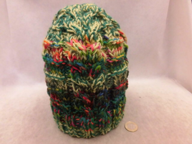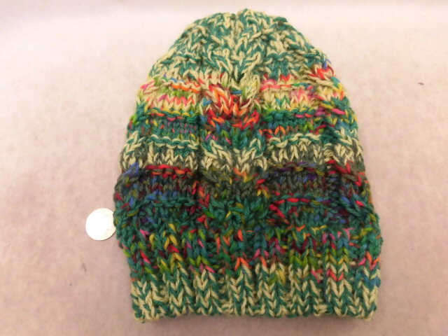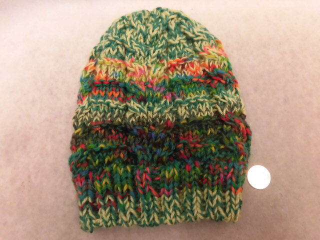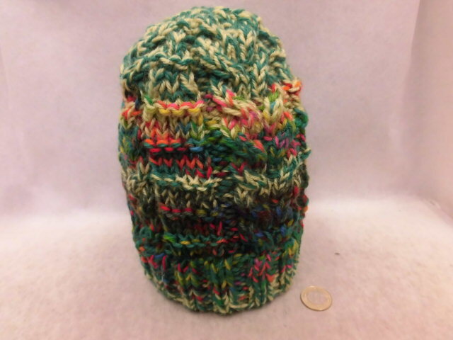 ☆手編み帽子26BB170☆薄緑~緑色系ミックスのアランケーブル模様の帽子