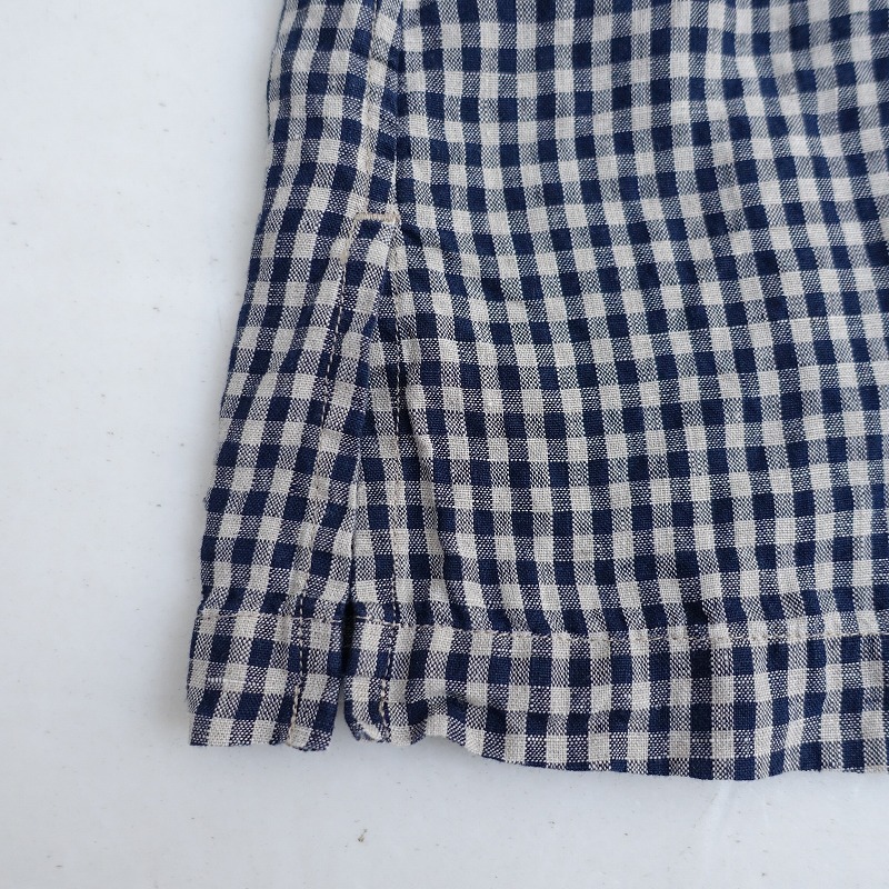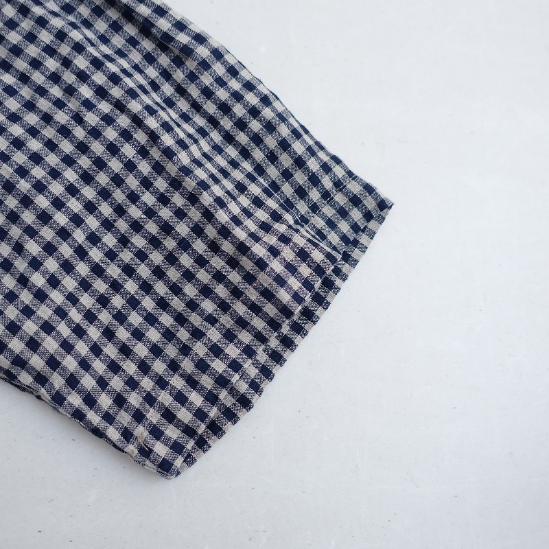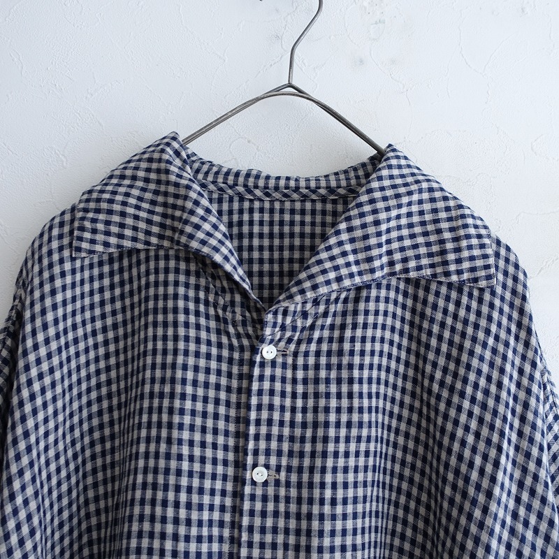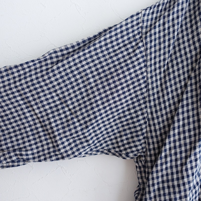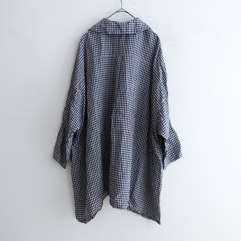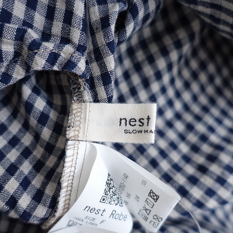 nest Robeのリネンギンガムウィングカラービッグシャツワンピースです。カラーはネイビー、ベージュのギンガムチェックで、リネン地で仕立てられています。フロントはボタンのフルオープン仕様です。ワイドな身幅のドロップショルダーに、裾サイドにスリット入りです。定価(メーカー希望小売価格) 28,600円の商品です。 |