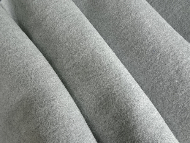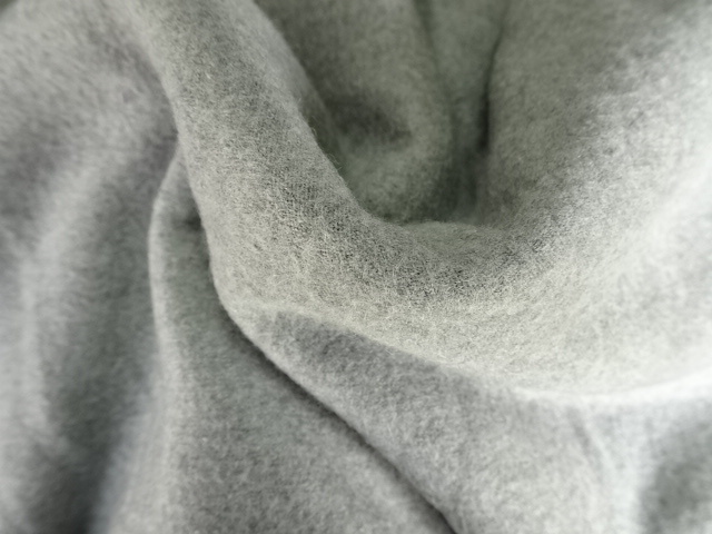 ウール天竺の表面を特殊な加工(ミルド加工)で毛羽立たせその毛羽を整えて生地の目を詰めた滑らかで適度なハリと肉感を持つウールジャージ素材のことです。この加工によりウールのちくちく感が軽減され上品な光沢としっかりとした風合いが生まれるのが特徴です。