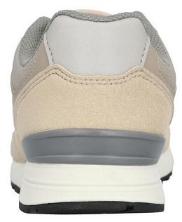 アッパー素材はメッシュ仕様で通気性を確保。かかと側に配置された硬質パーツが着地時の安定性を向上させます。