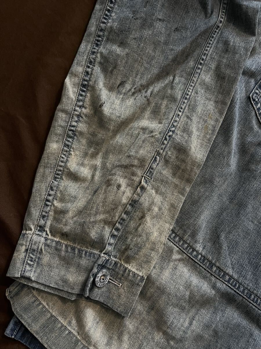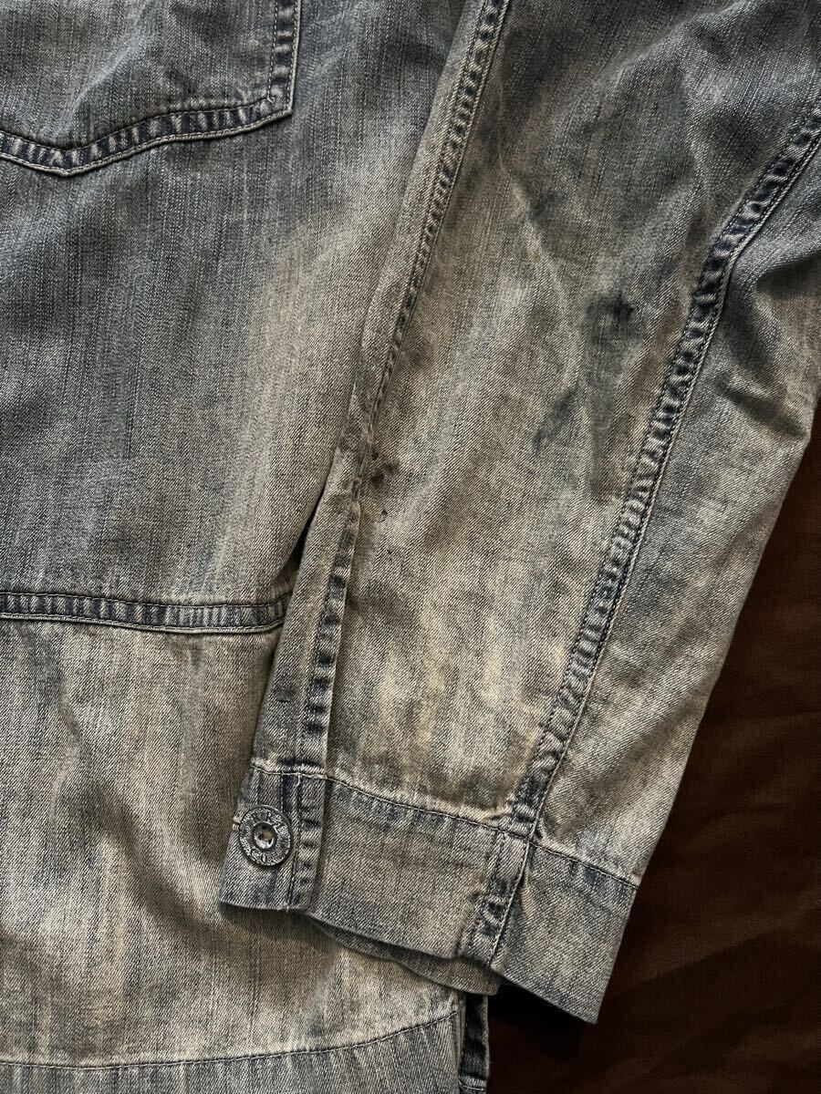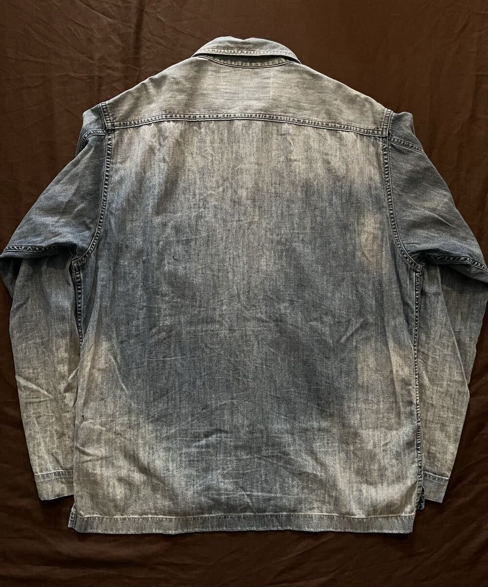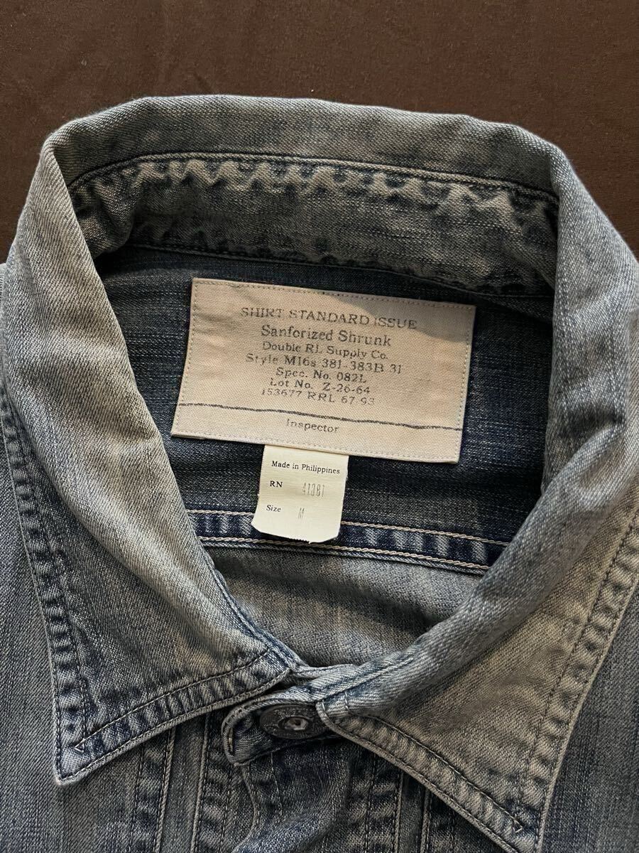【傑作】極美品 RRL MONTGOMERY SHIRT ダブルアールエル インディゴ 藍染め フェード加工 汚し加工 デニム シャツ ジャケット 炭鉱 M